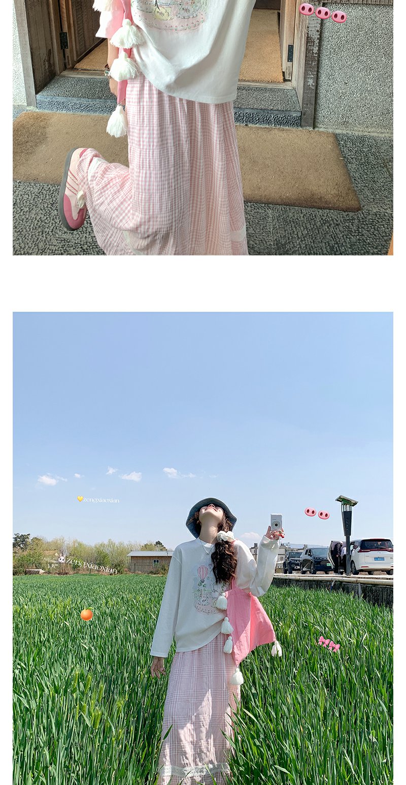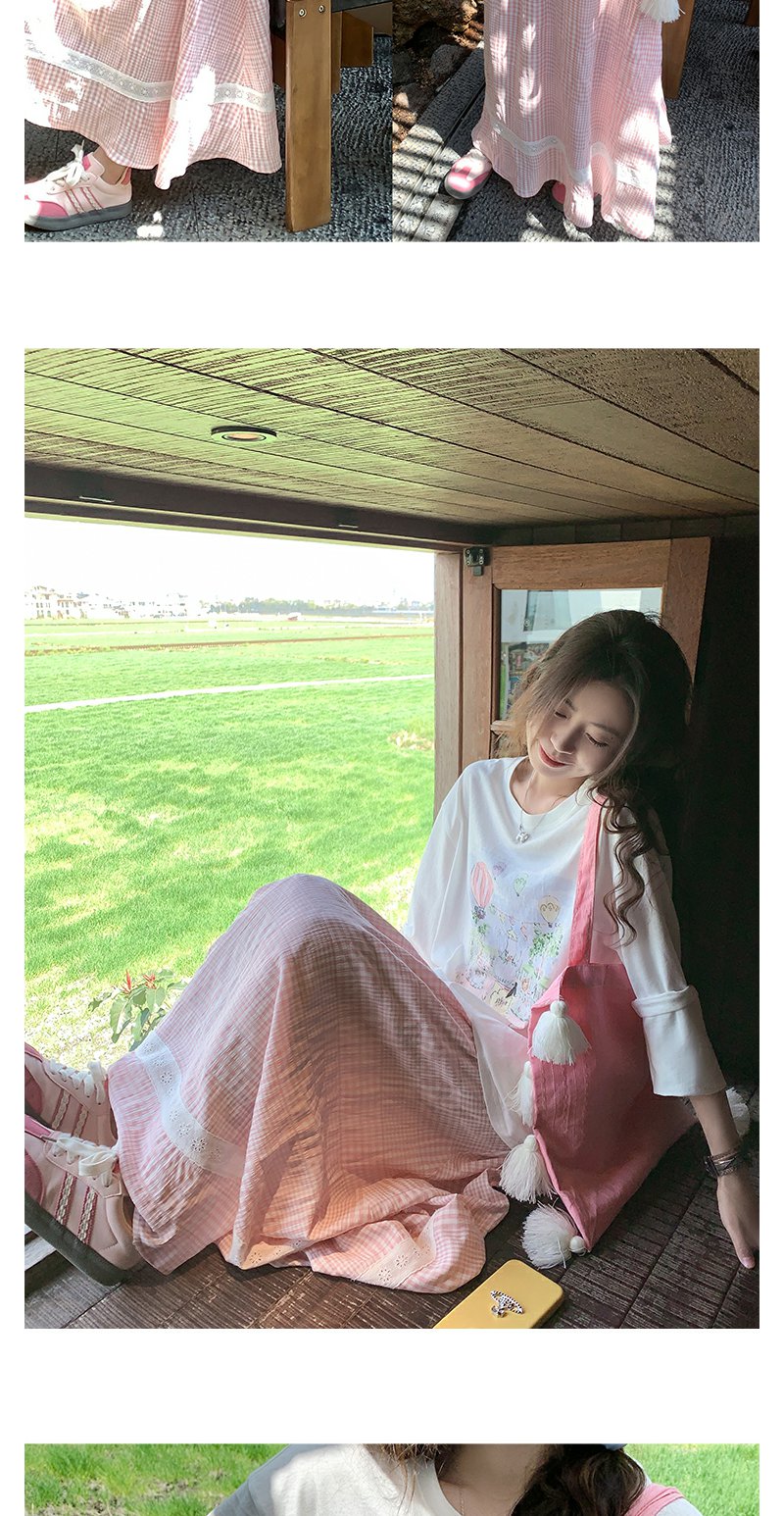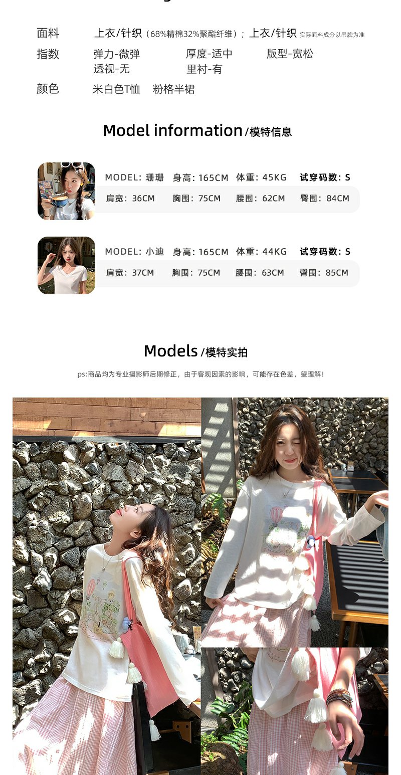 <曾小咸推荐>趣味印花防晒宽松T恤粉色格子半身裙