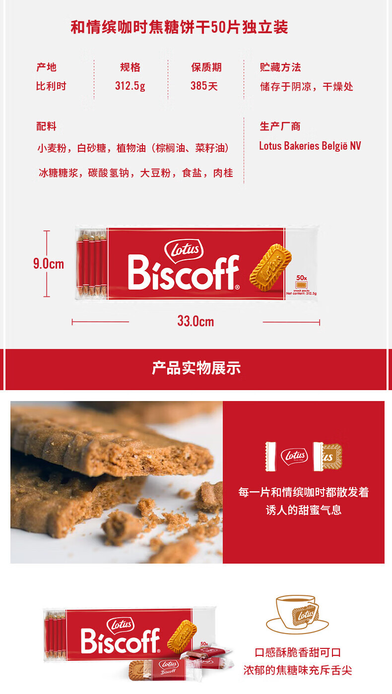 和情(LOTUS)缤咖时焦糖饼干312.5g独立装50片下午茶休闲零食 比利时原装进口 685464