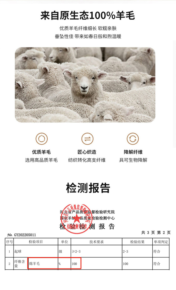 100%纯羊毛,可以用专用洗衣液或沐浴露等清洗,不可烘干,烘干后会缩水