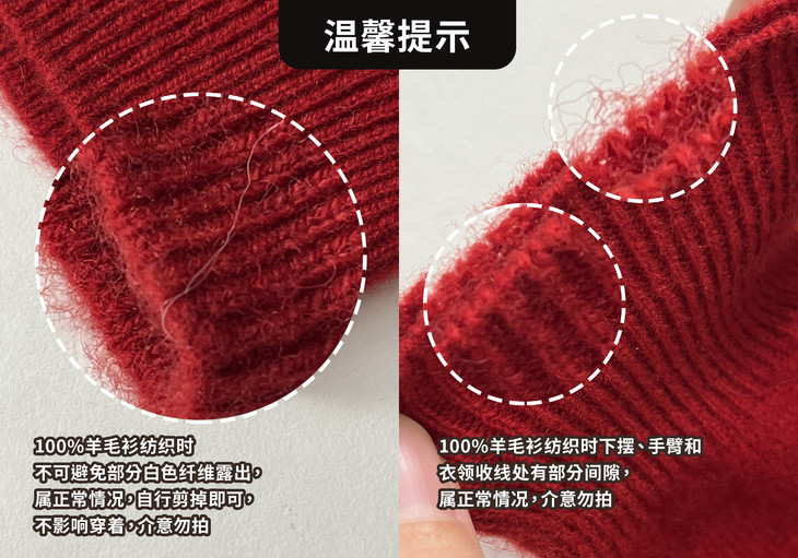 纯羊毛衫第一次清洗会有些许浮毛,属于正常现象,介意慎拍