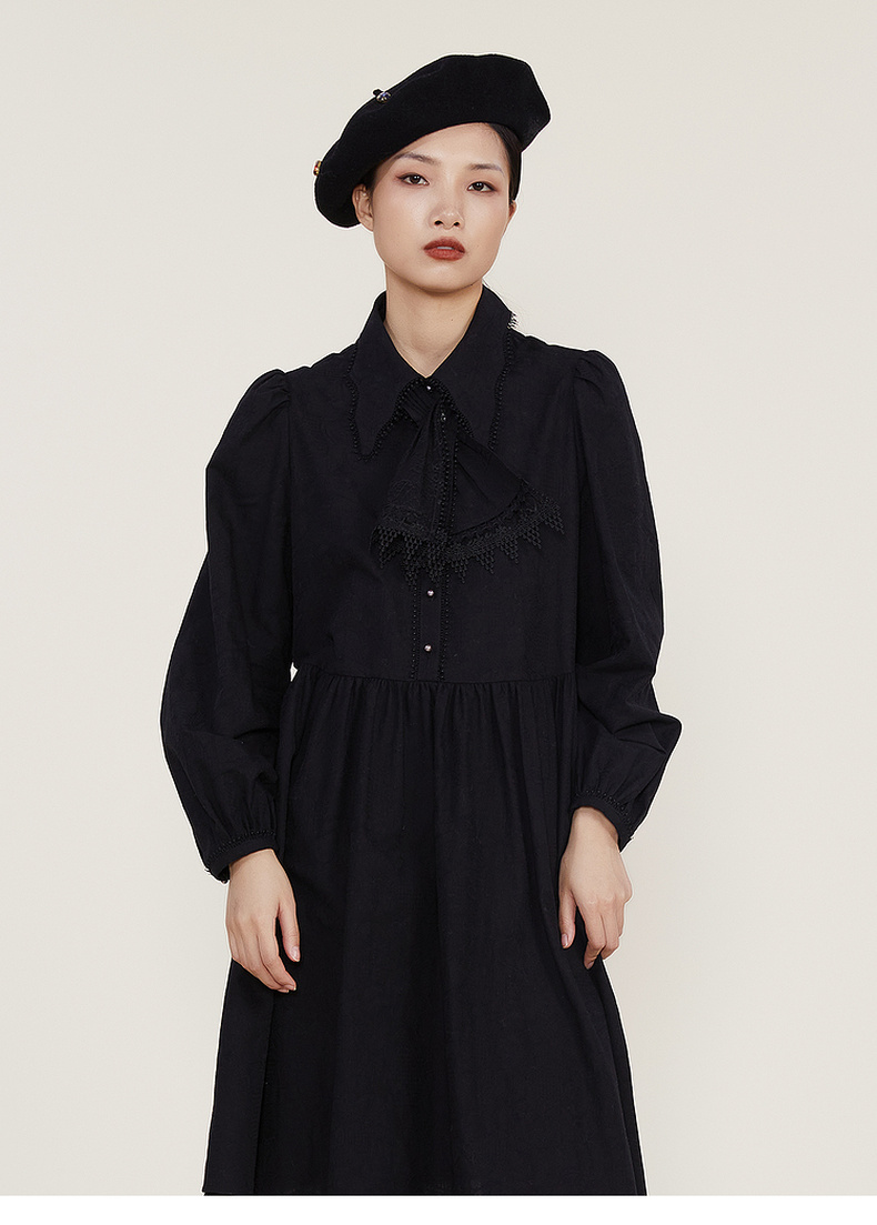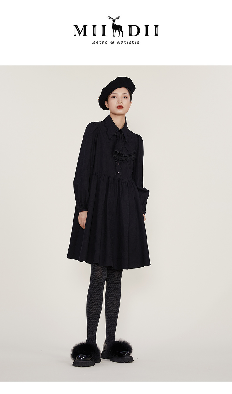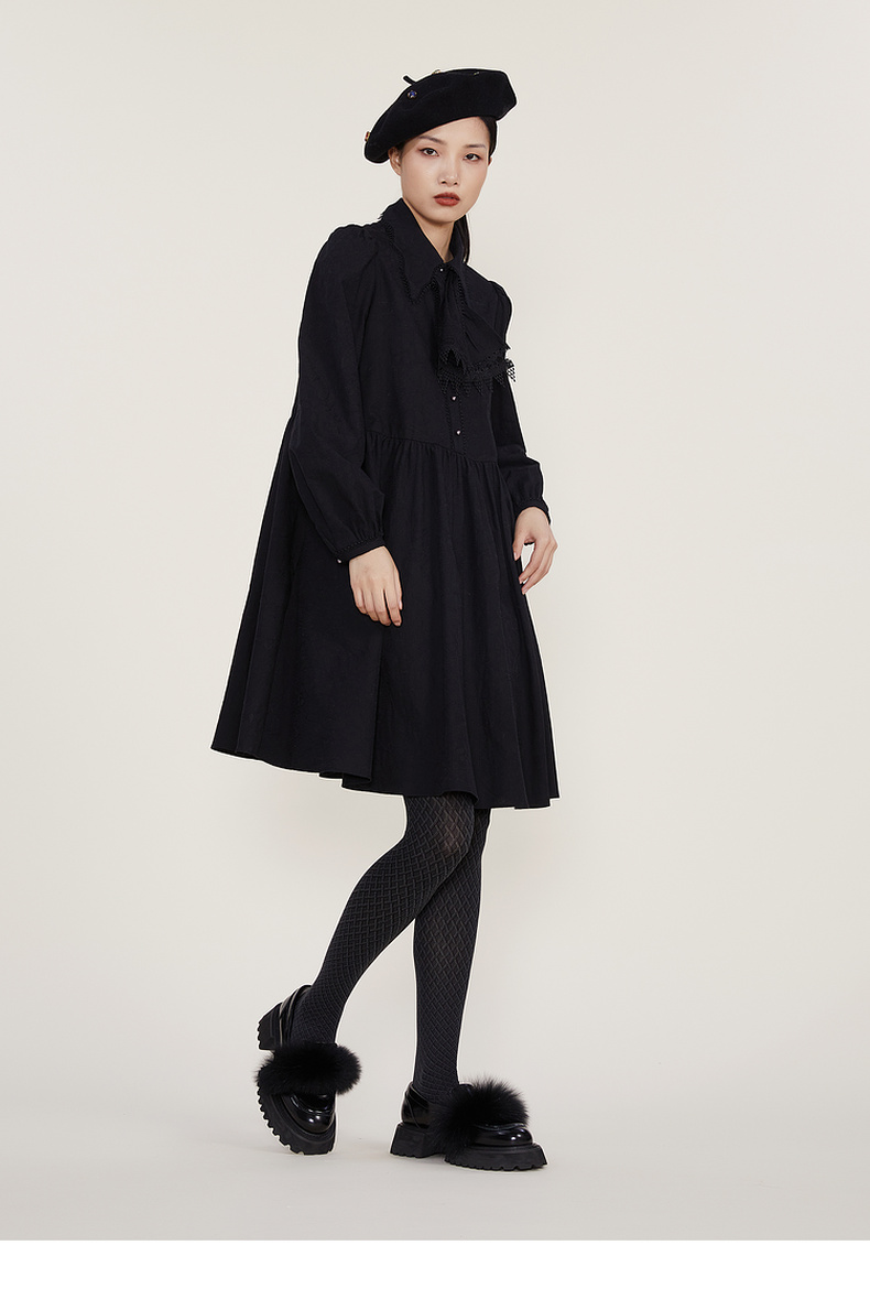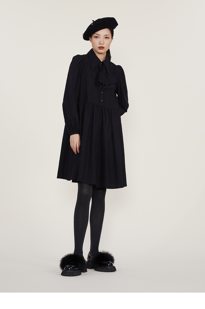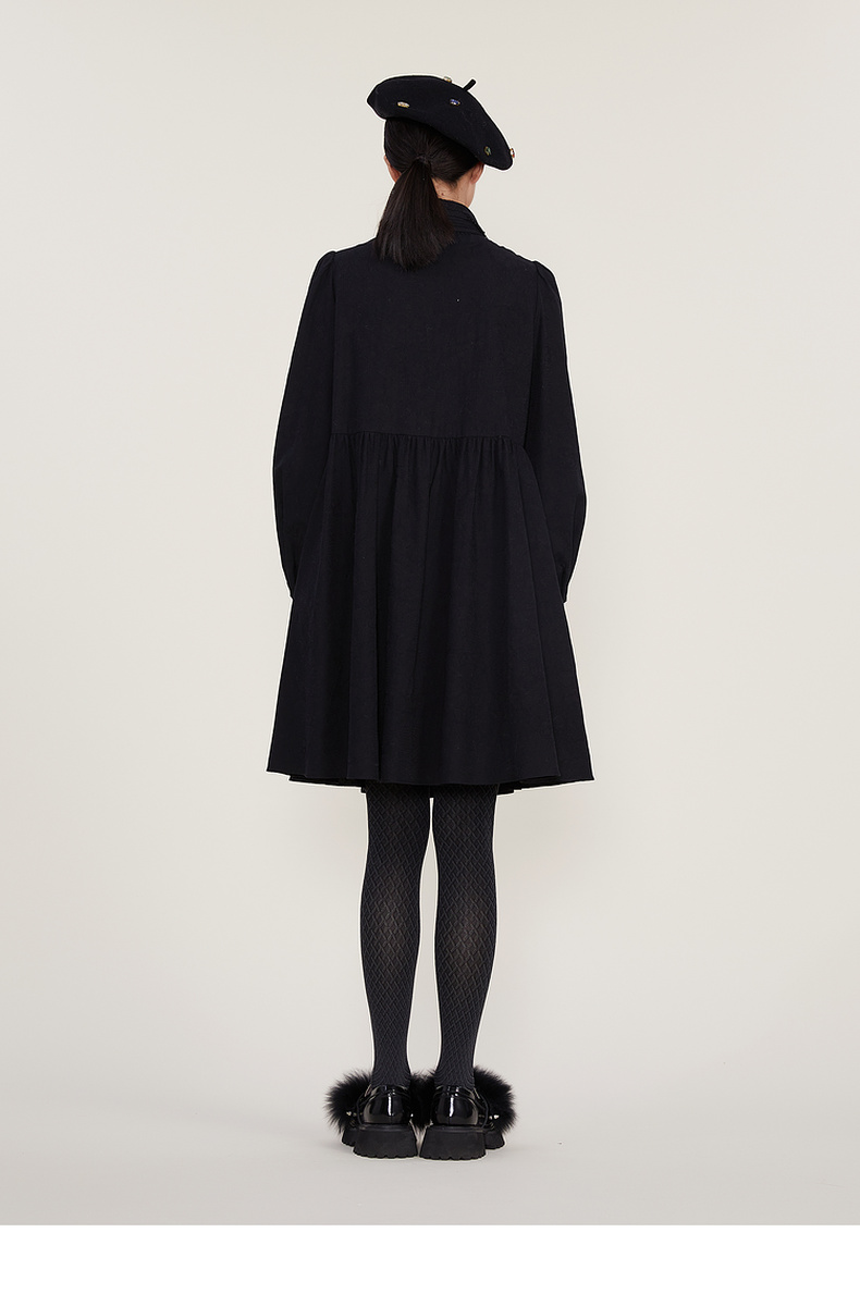 谜底2022冬季新款宽松A字型中长款连衣裙长袖女复古精致224ML1684