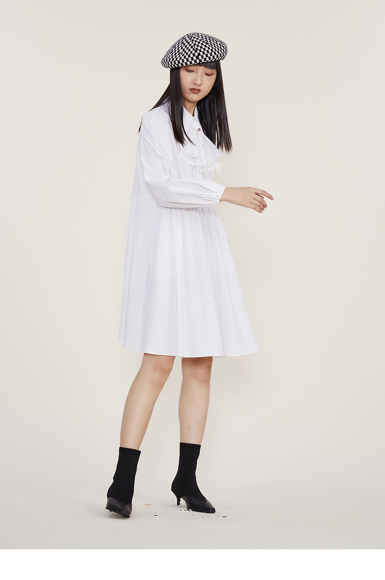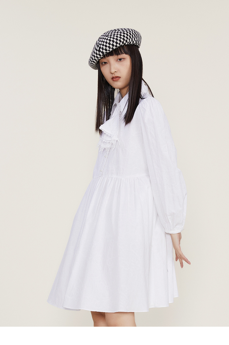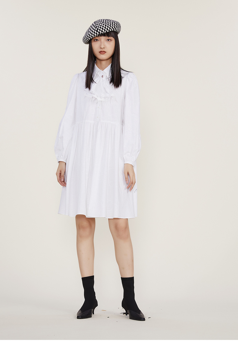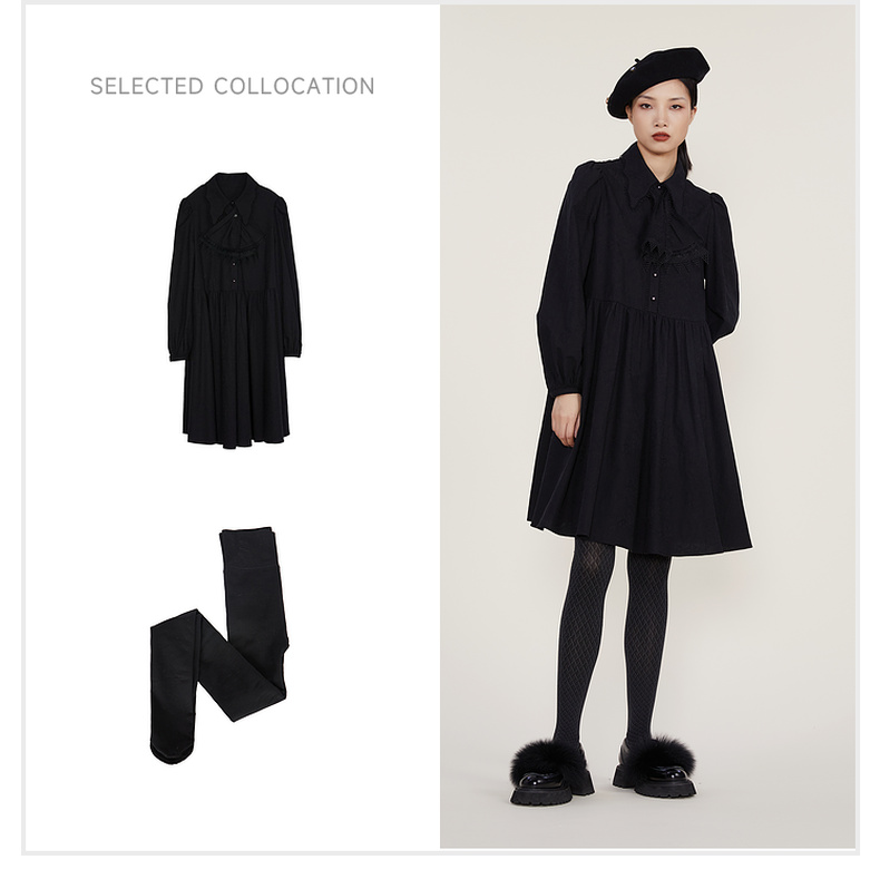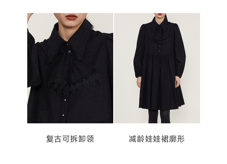 谜底2022冬季新款宽松A字型中长款连衣裙长袖女复古精致224ML1684