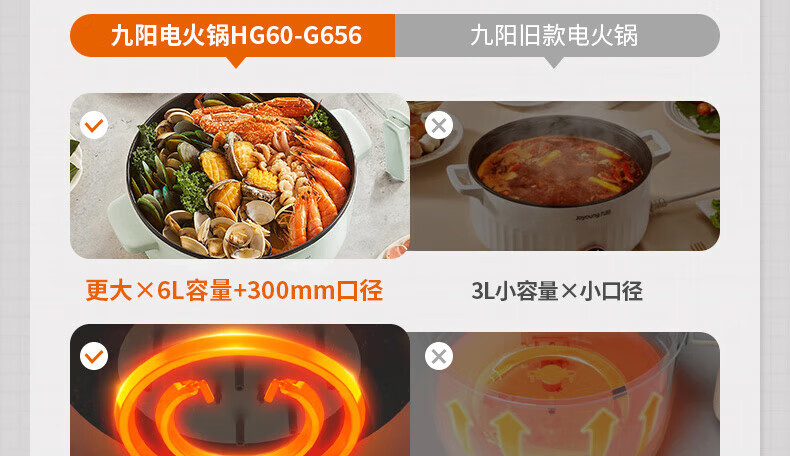 九阳(Joyoung)电火锅大容量多功能家用电煮锅电热锅电炖锅 HG60-G656