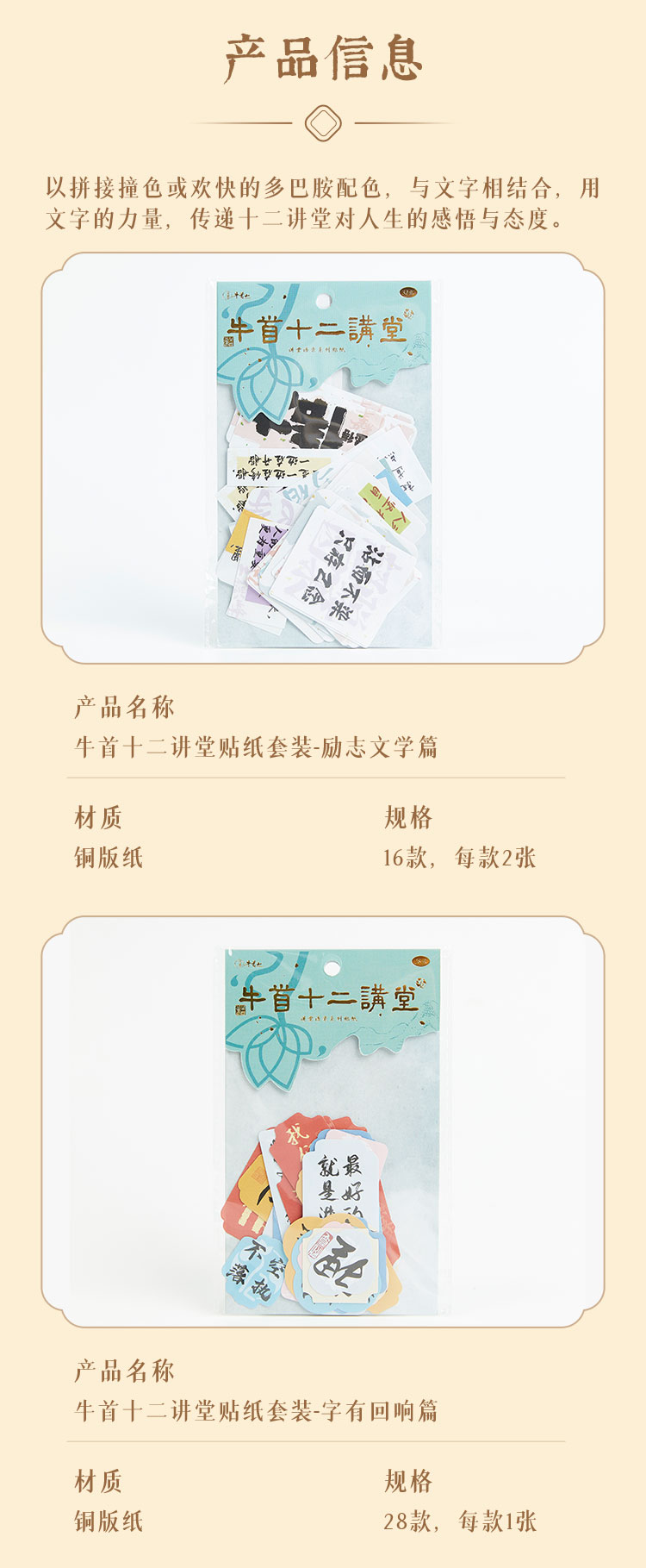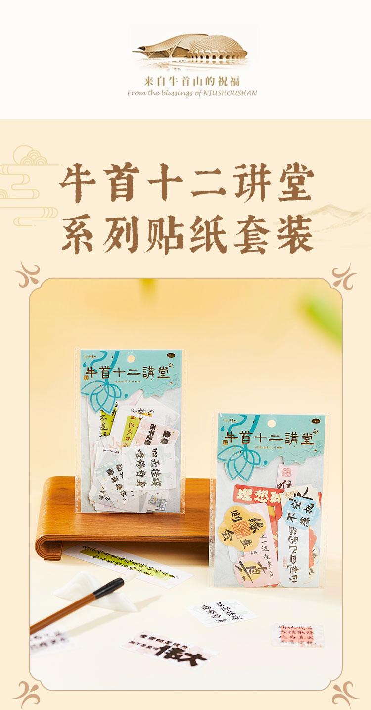 牛首山文创牛首十二讲堂系列贴纸套装经典语录文字贴纸创意手账装饰DIY素材