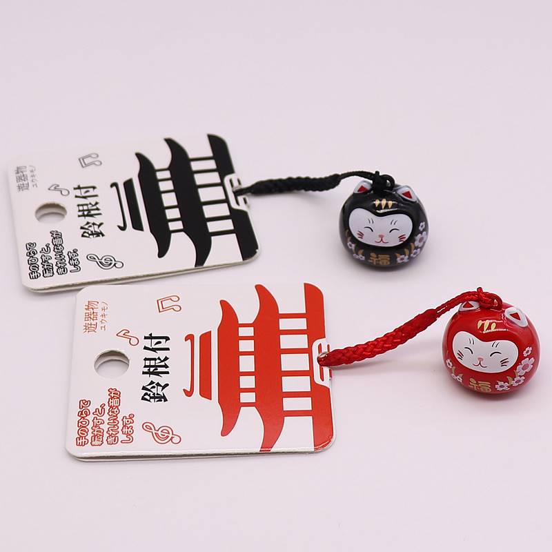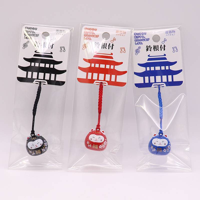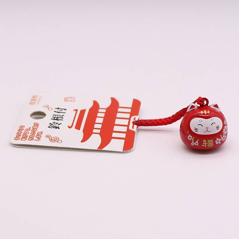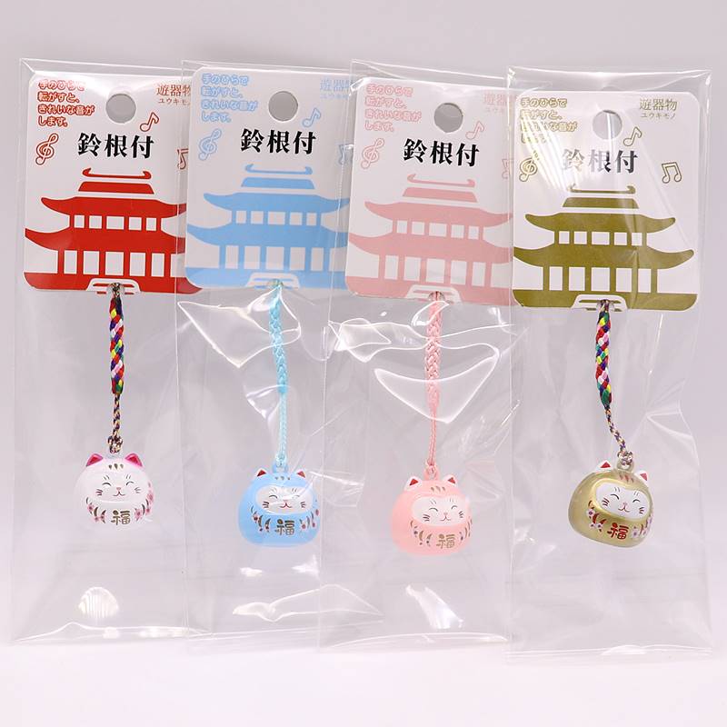 鈴根付 樱花福猫笑脸水音铃挂件 珠光绿色