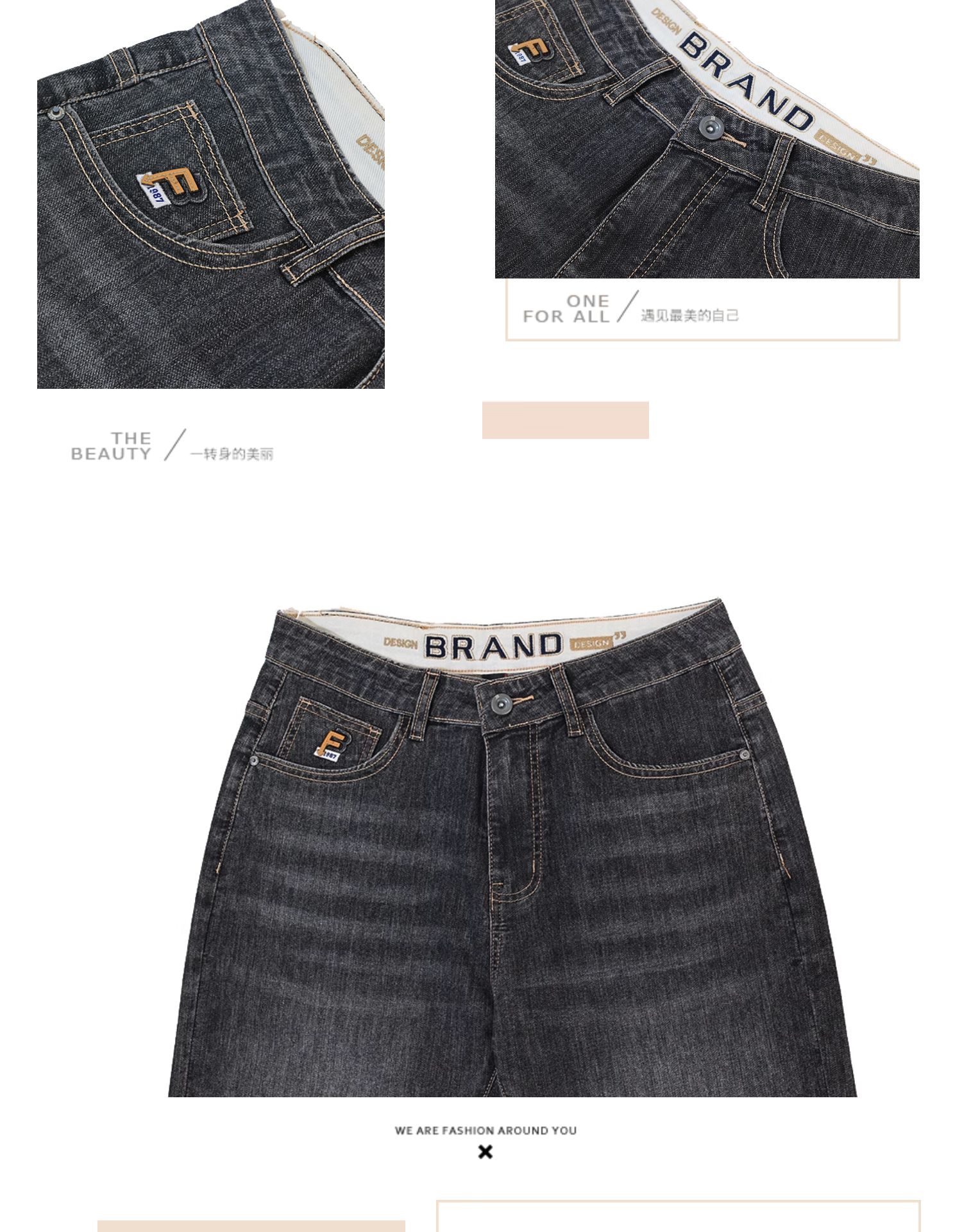 半身缘男裤 夏季舒适合体青春活力袋绣花牛仔裤252101U10103758