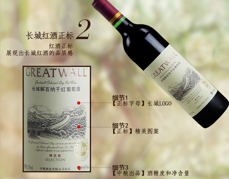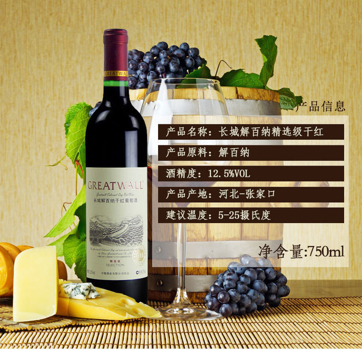 长城精选级解百纳干红 整箱750ml*6瓶包邮