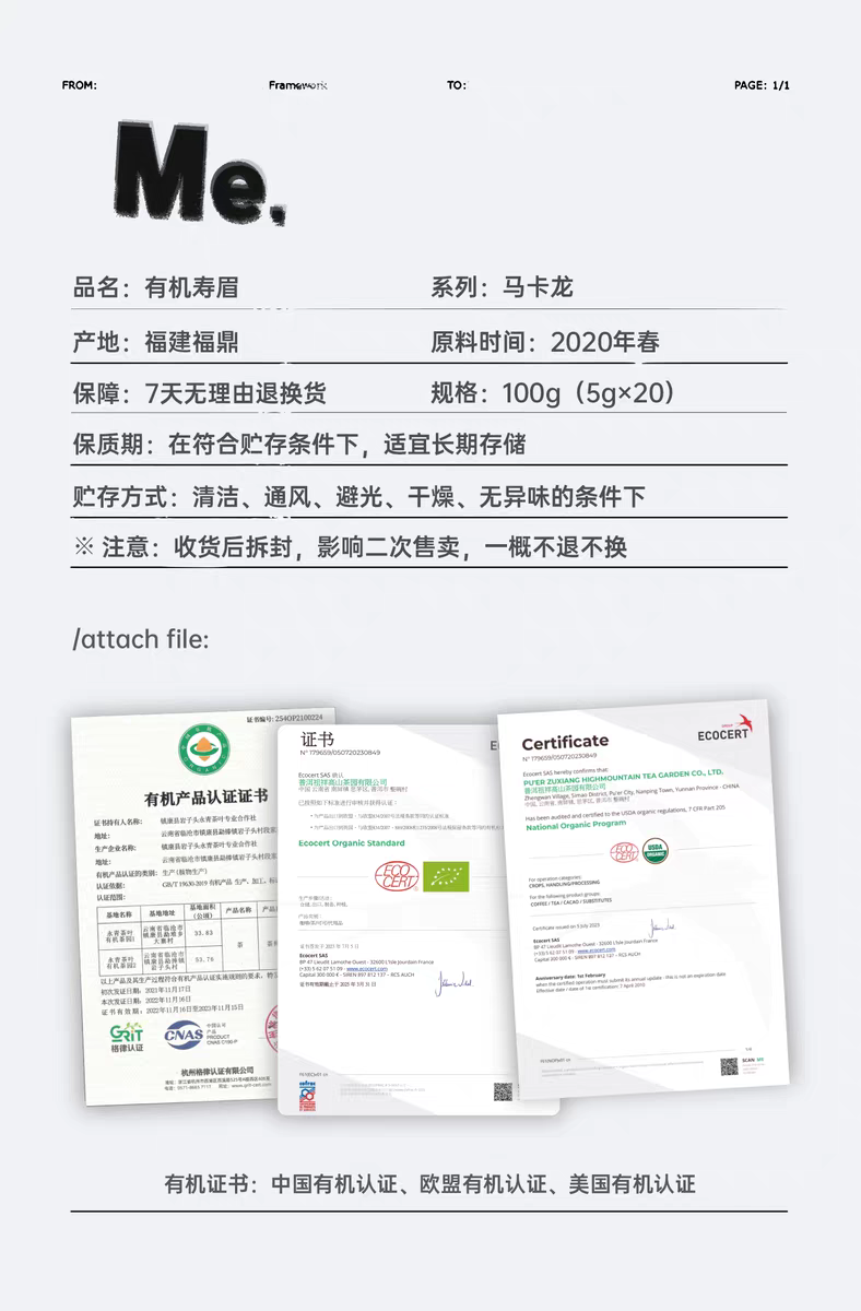 有机寿眉 5g*20片