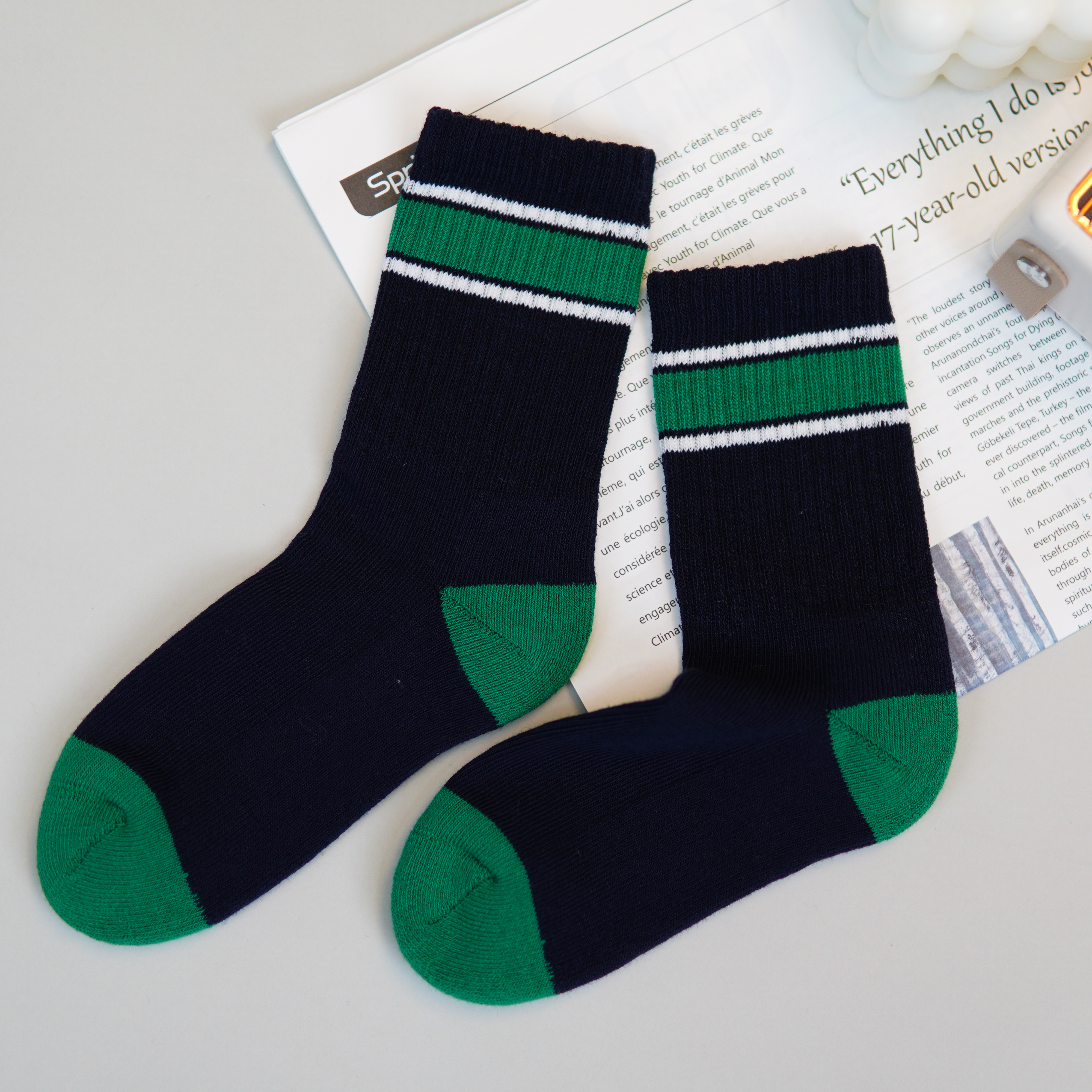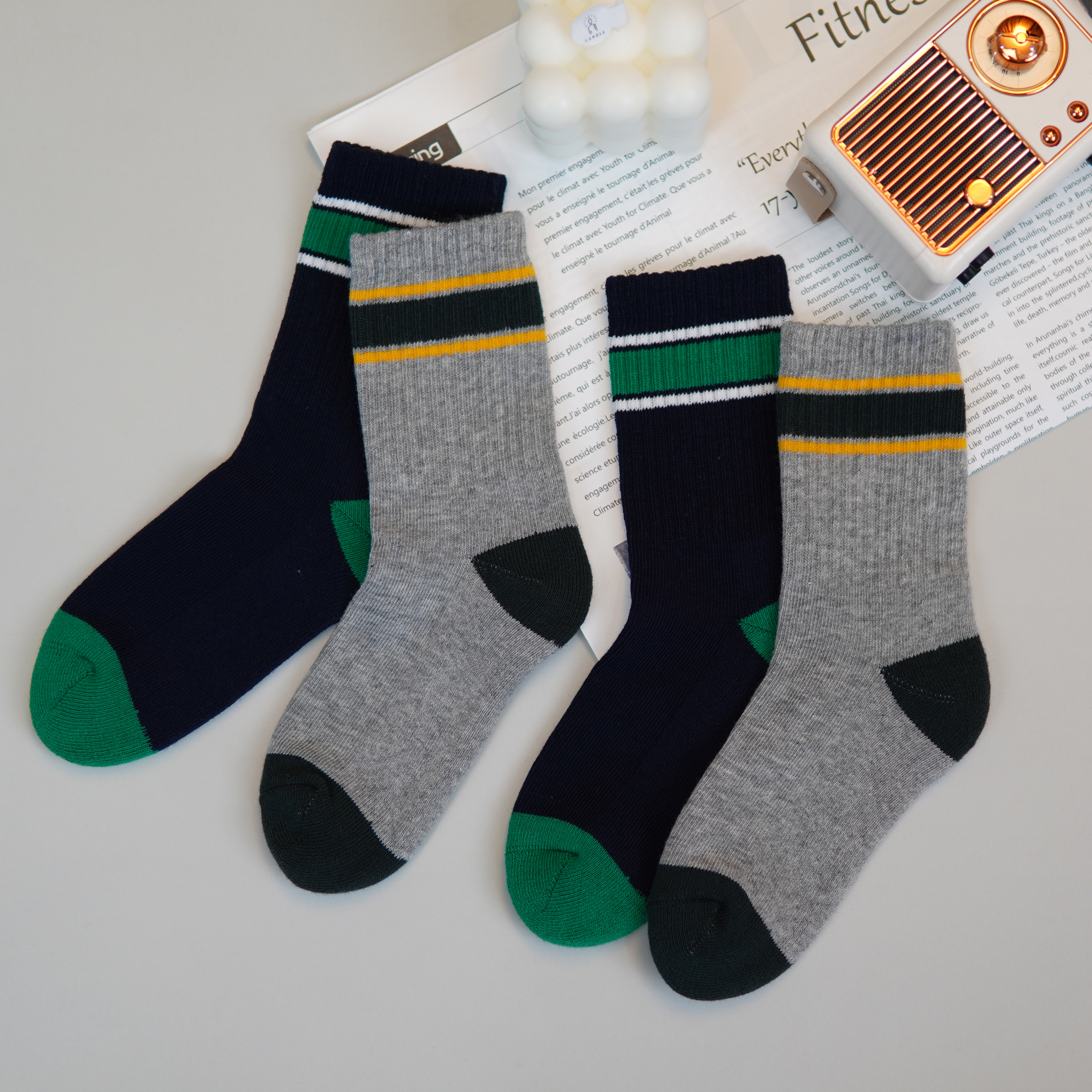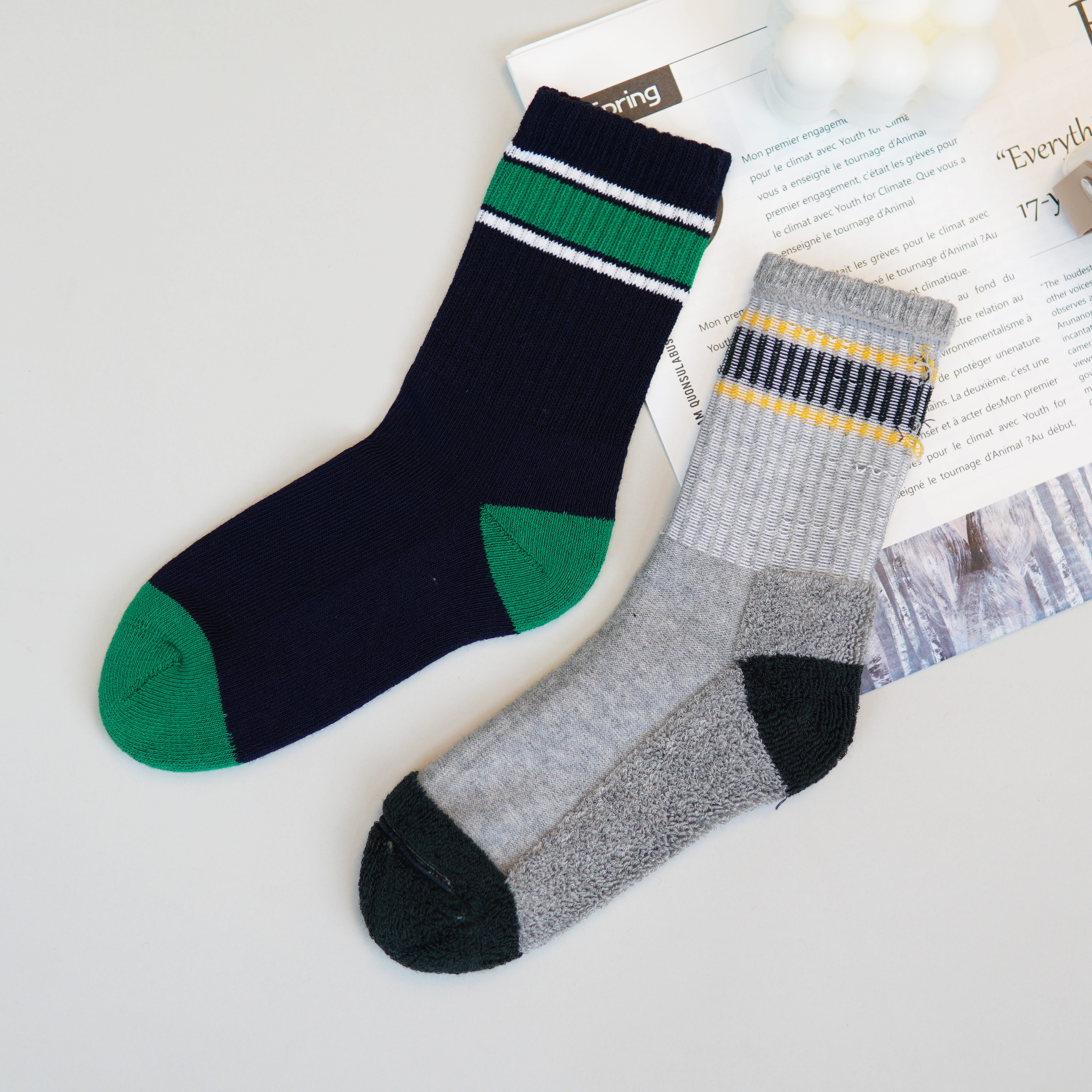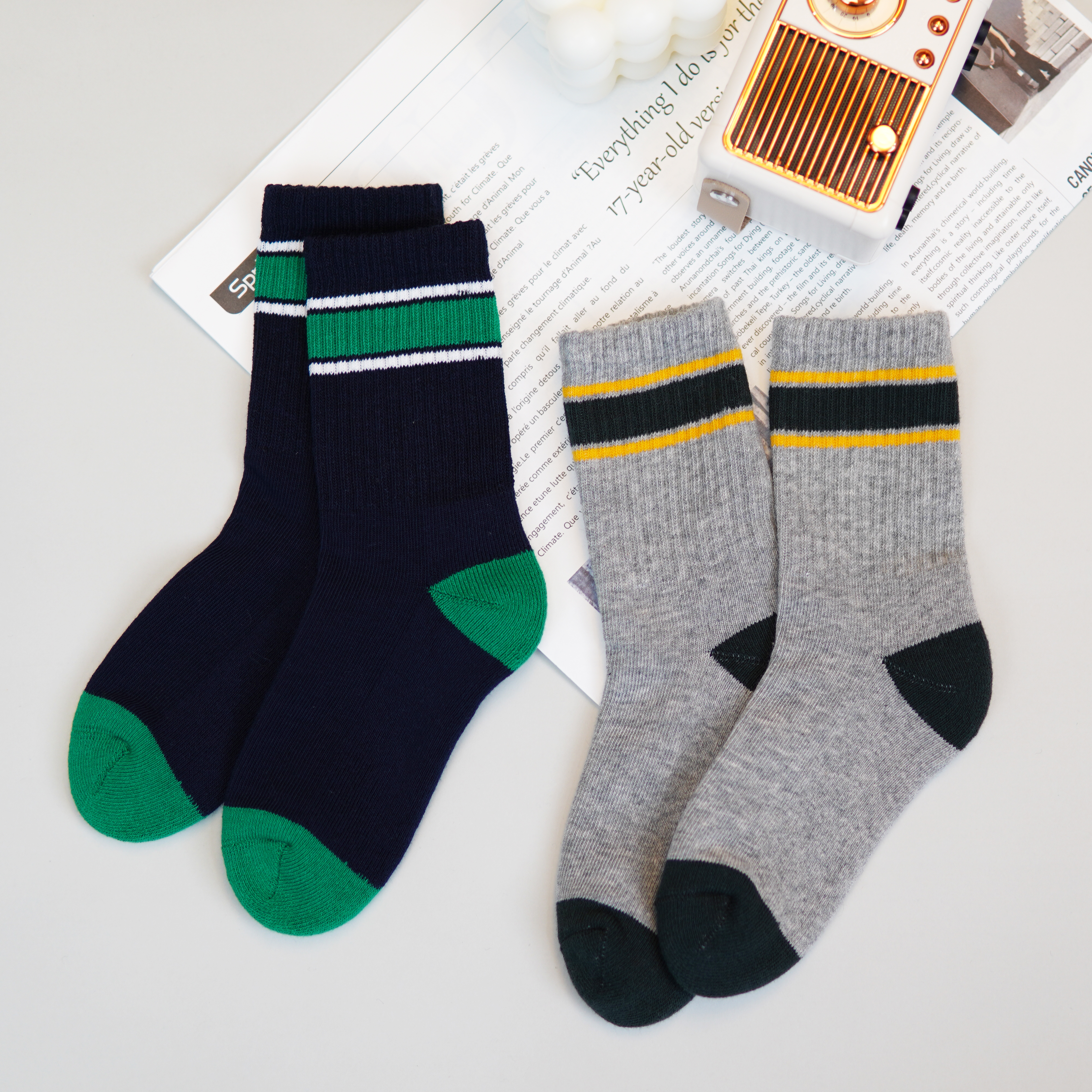 童【6双6折 2双装】丨儿童半毛圈袜子中长筒棉袜条纹棉袜毛圈袜子5-7岁【2423701】