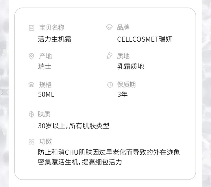 法国Cellcosmet瑞研活力生机霜面霜50ML