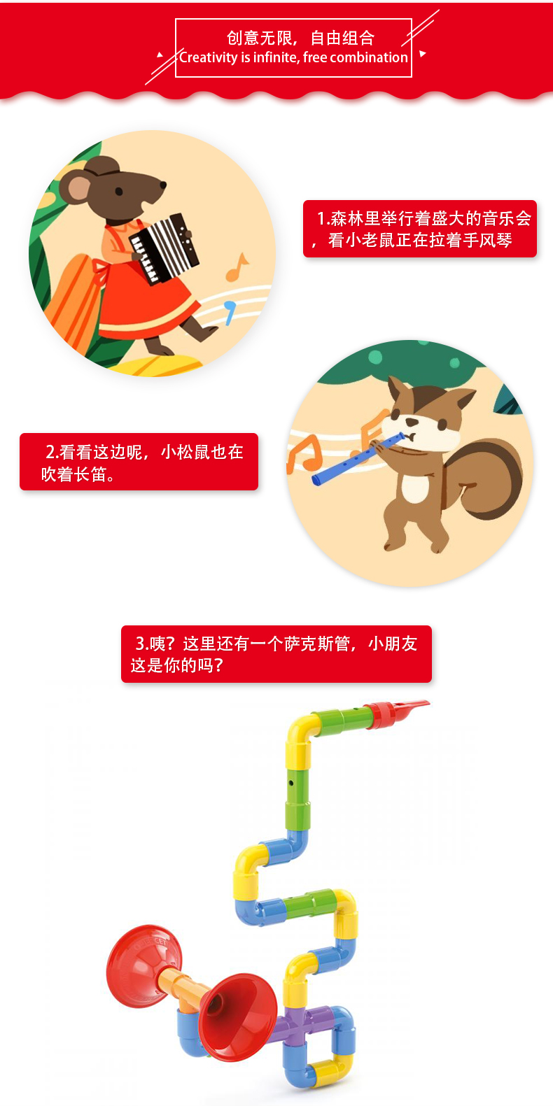 Quercetti启迪 构建系列 高级创意萨克斯管 Q4172 3+岁 意大利