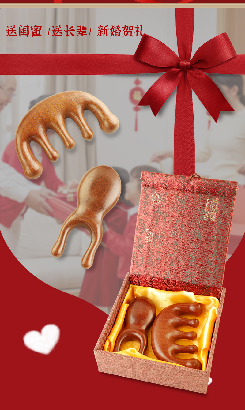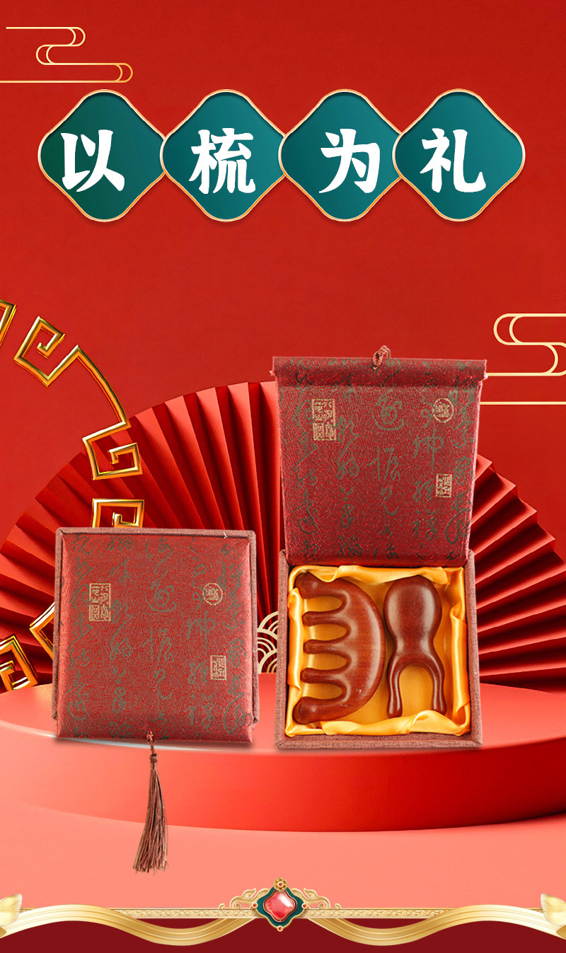 【金丝檀木梳!国潮风高雅之选!】天然檀木按摩梳🎁母亲节送长辈的贴心伴手礼,3分钟头皮SPA,舒缓疲劳,每一梳都满载温情❤️国潮风檀木按摩梳礼盒套装 母亲节送长辈礼物 经络梳子排骨梳伴手礼