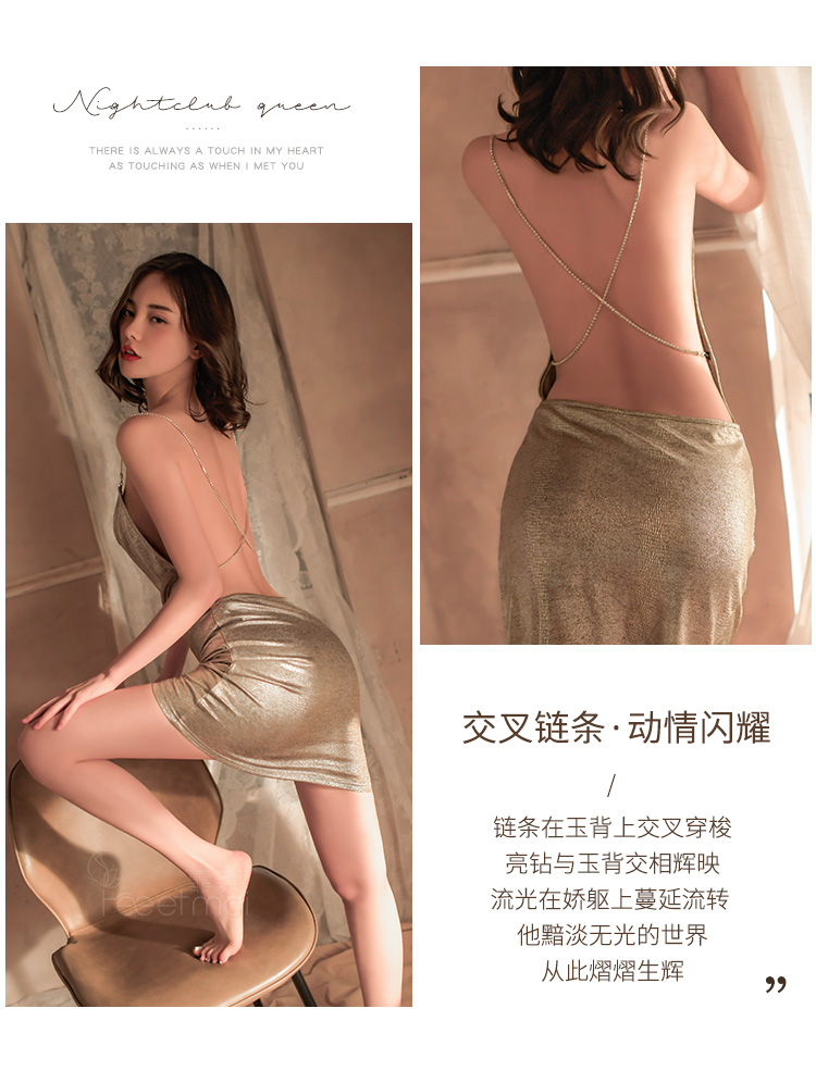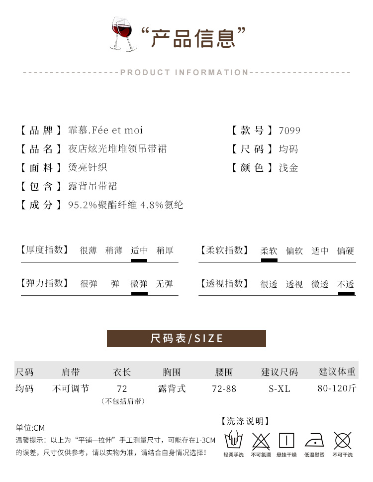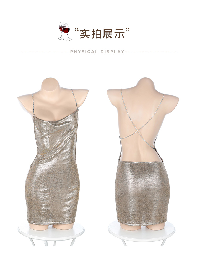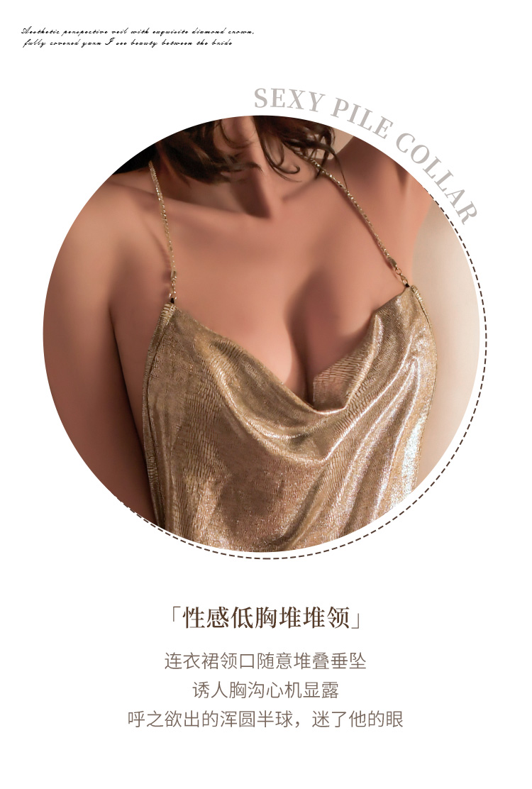 夜店炫光堆堆领吊带裙7099
