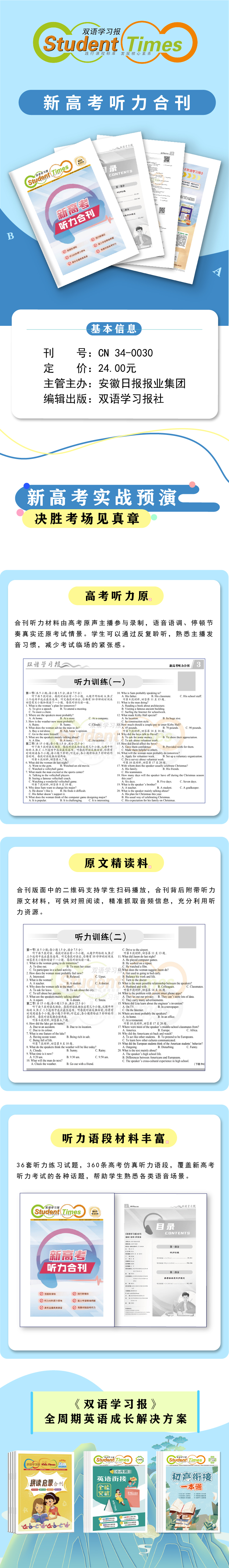 双语学习报高中合刊 新高考听力合刊 听力提升扫码听音实战演练