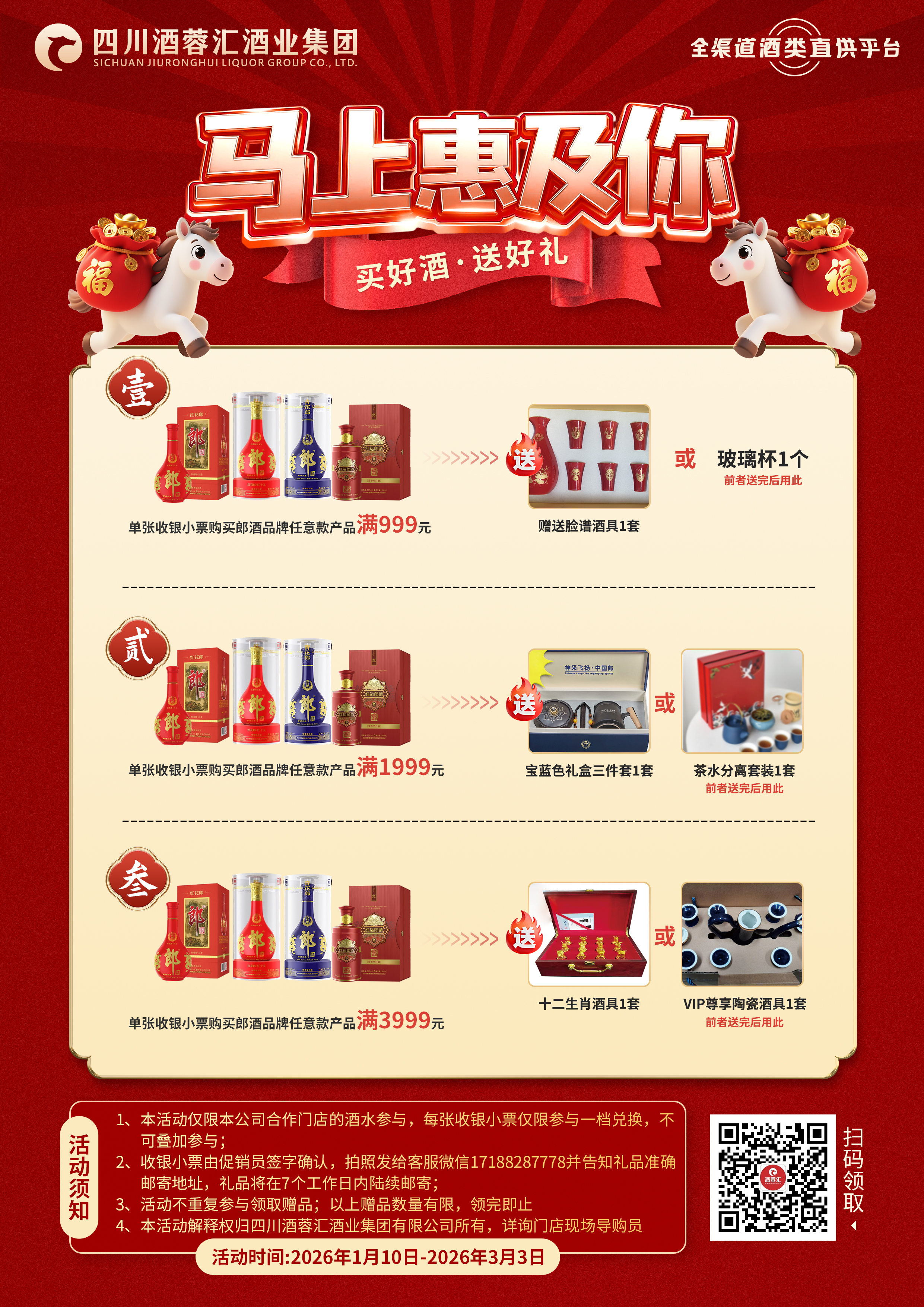 四川贵州区域专享:郎酒满赠+1分钱送礼品(每张小票只能参加1次活动)