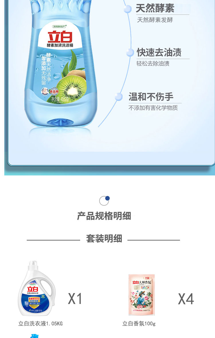 立白除菌洗衣液1.05kg酵素洁净六件套(1905g)