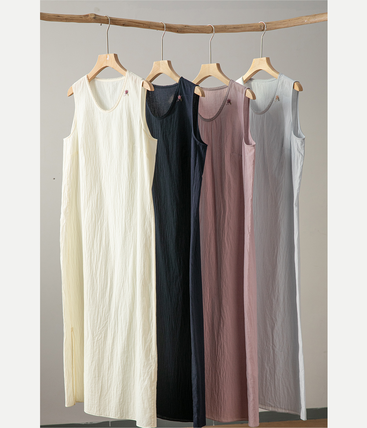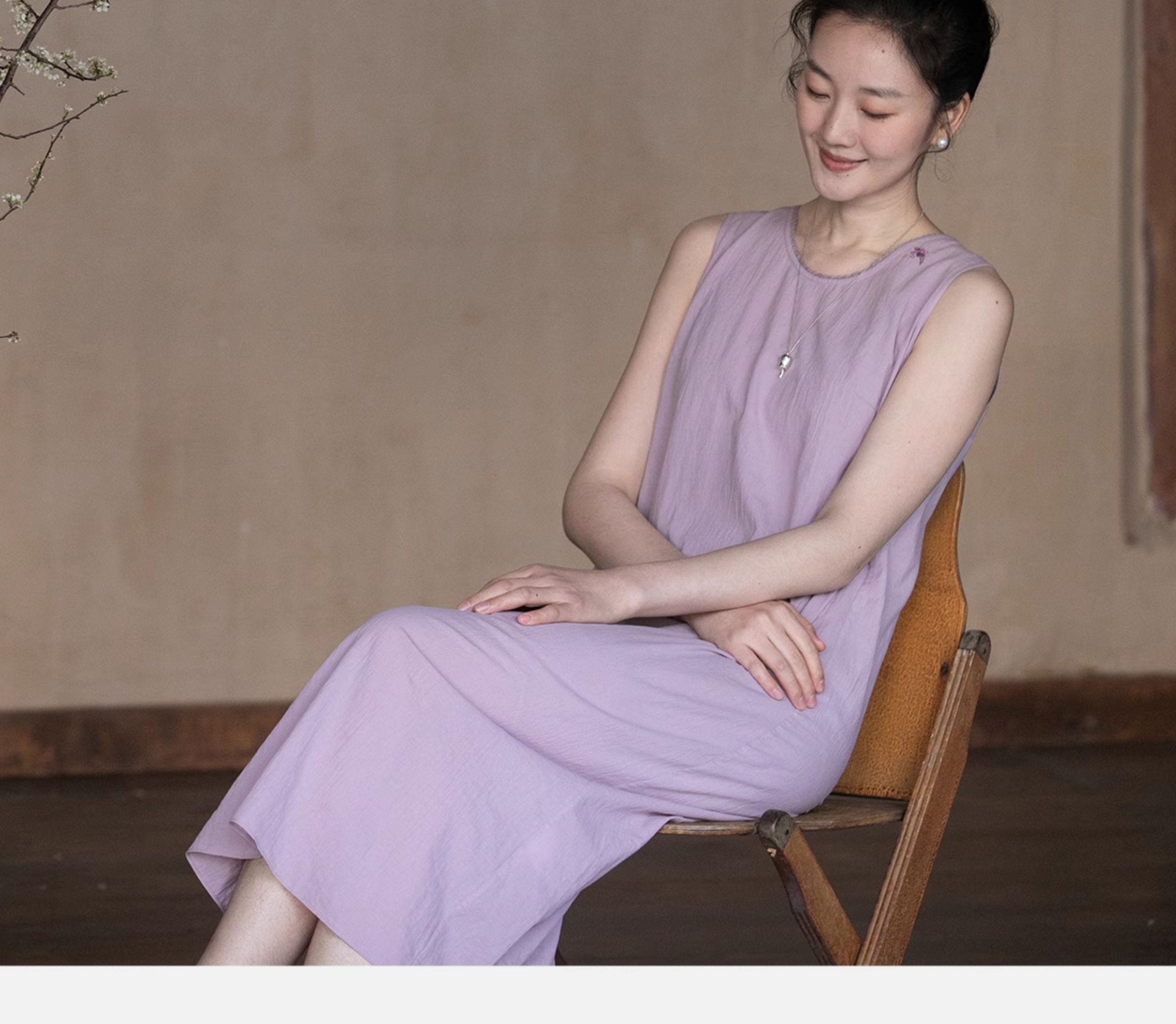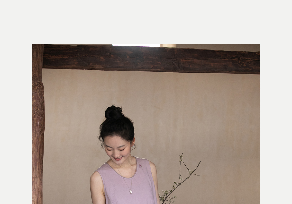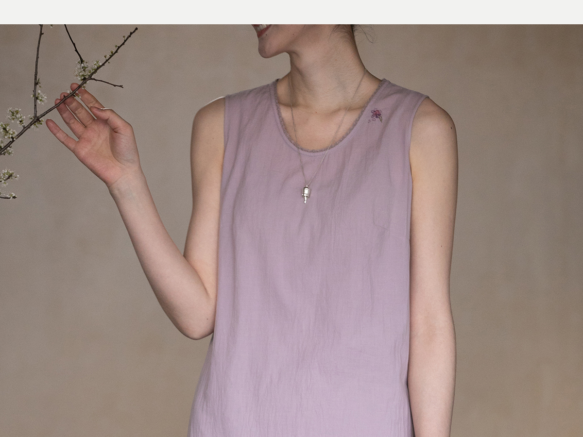 牧衣游原创 60支纯棉手绣无袖背心连衣裙女 紫霞【不支持会员折】