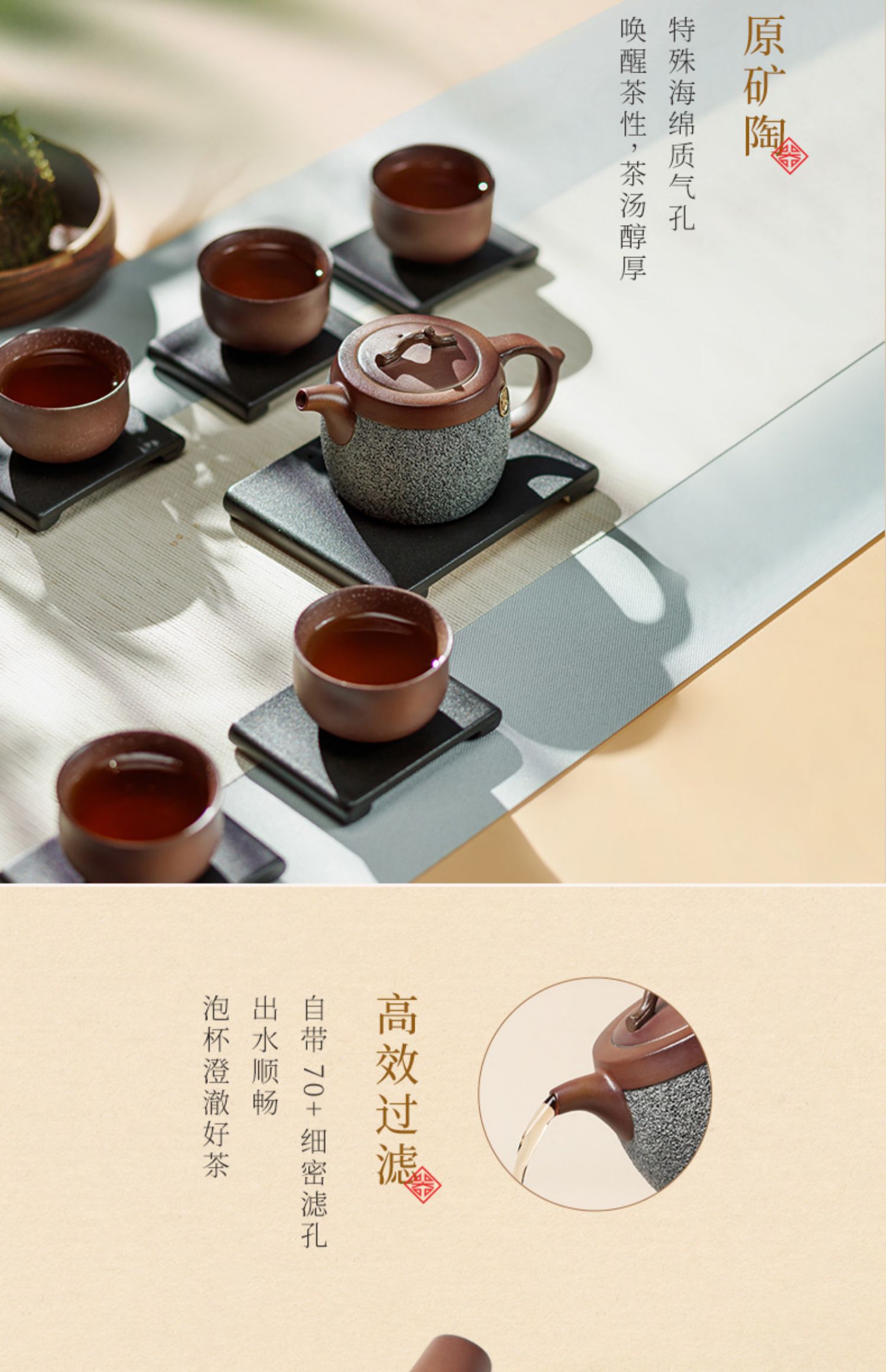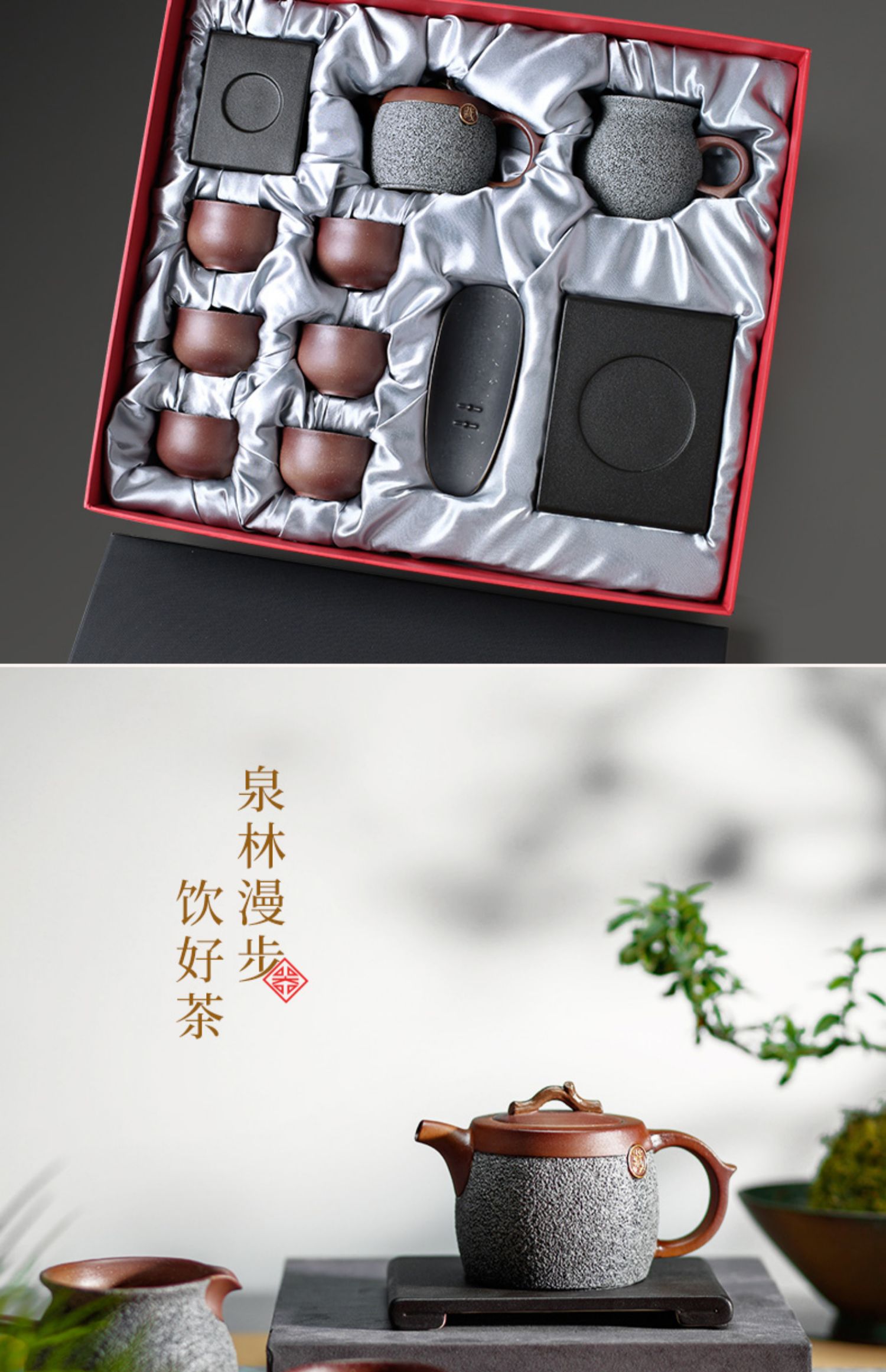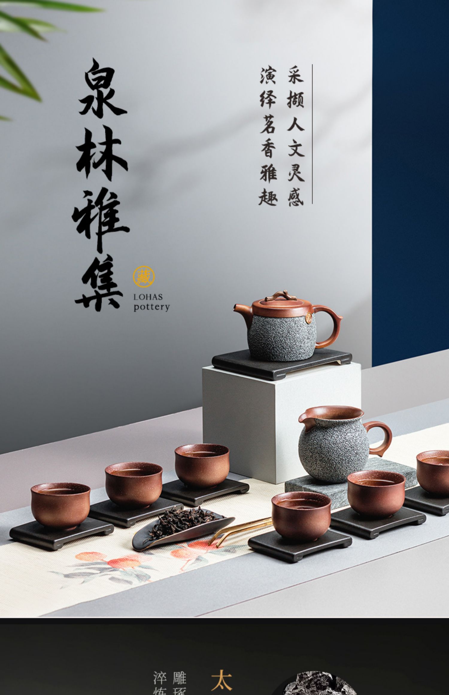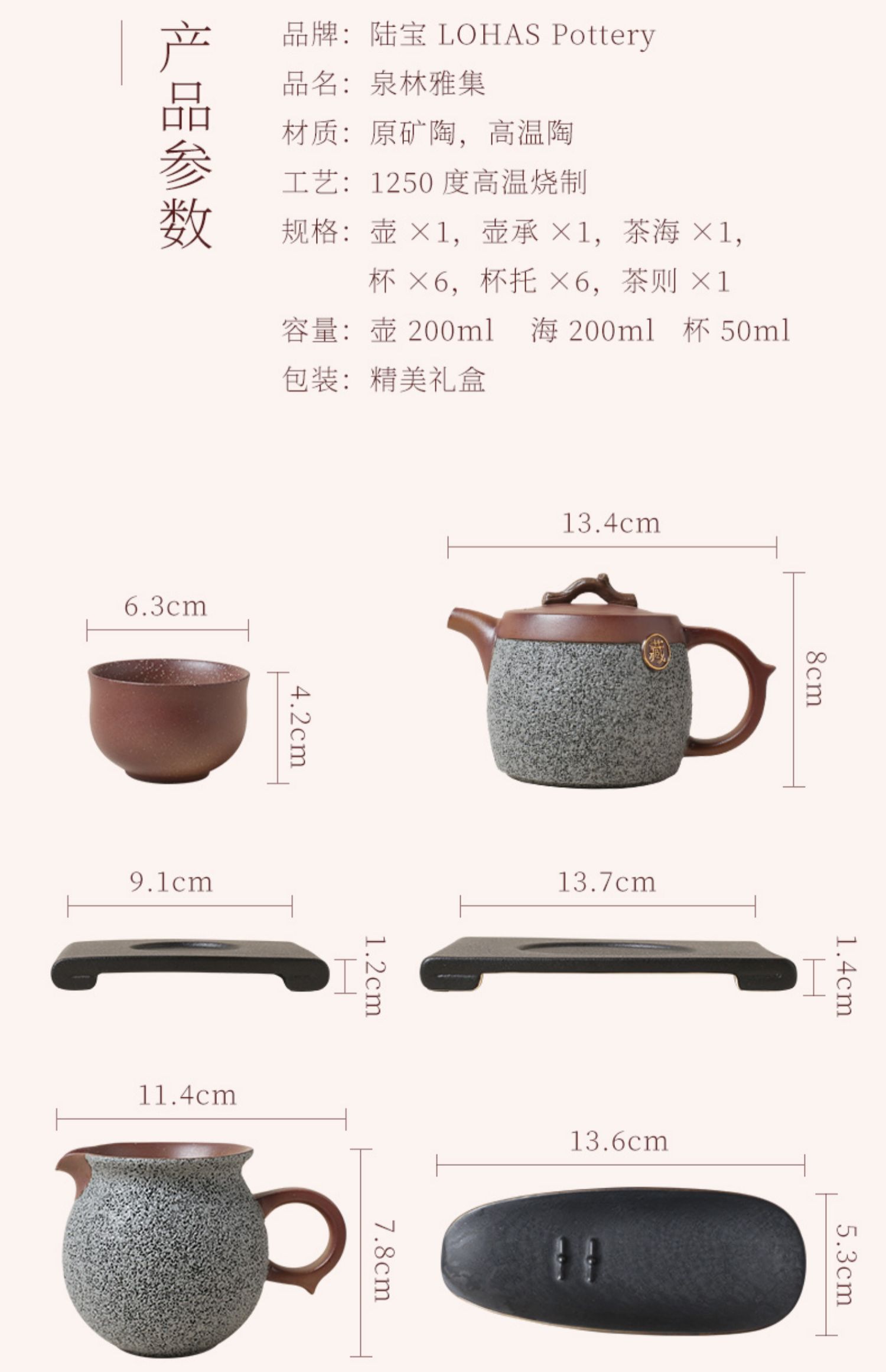 【特惠6折,仅1套,无货退款】陆宝陶瓷功夫茶具套装轻奢高档家用办公室茶器一壶六杯 泉林雅集