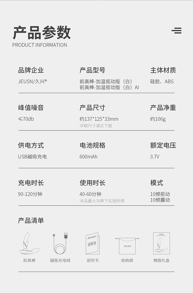 JEUSN前高棒扣动前列腺按摩器男用后庭肛门