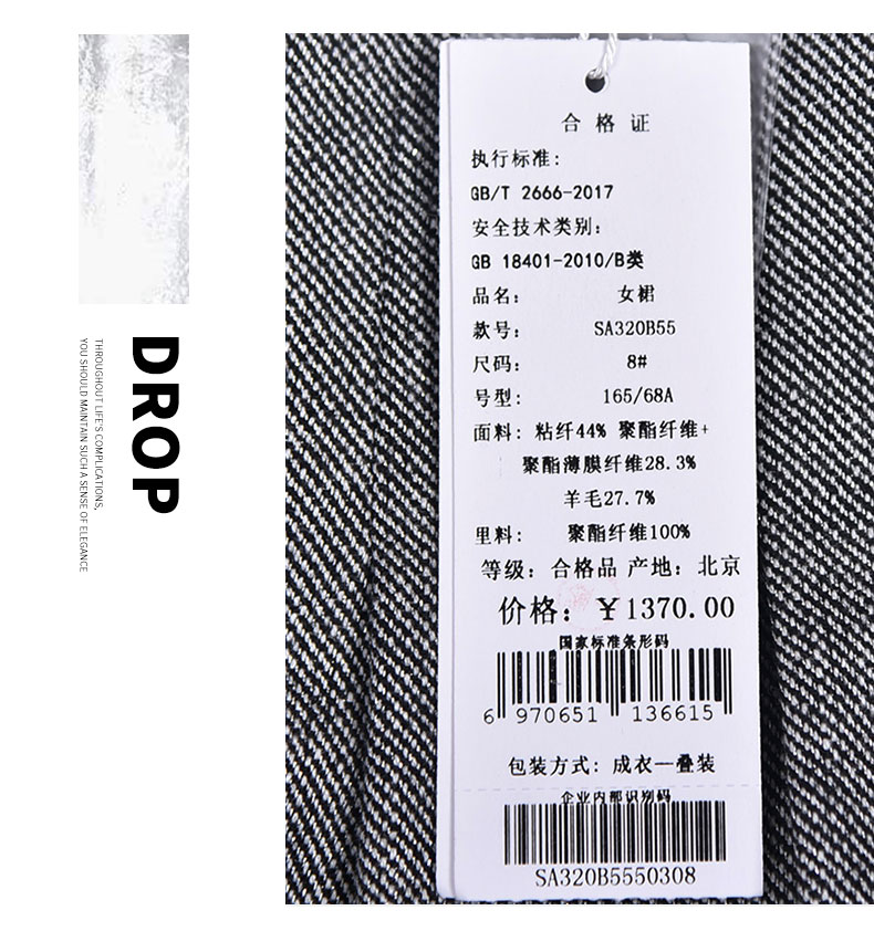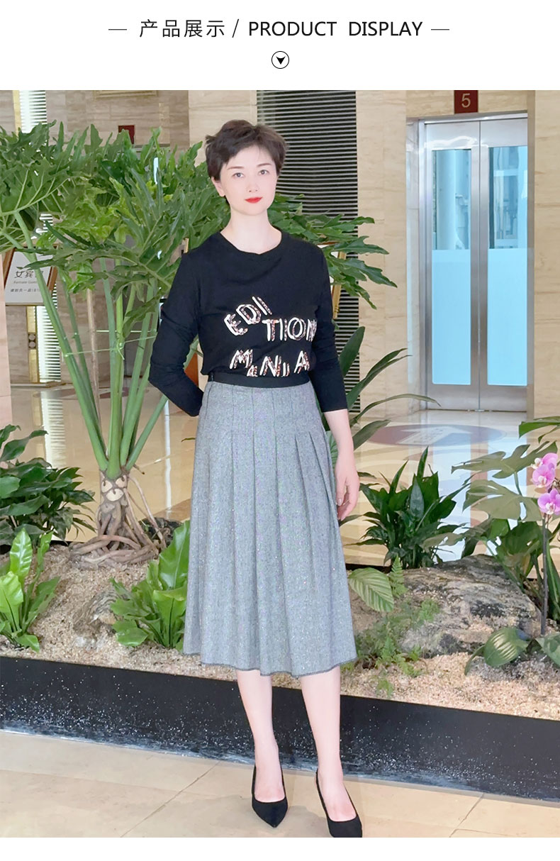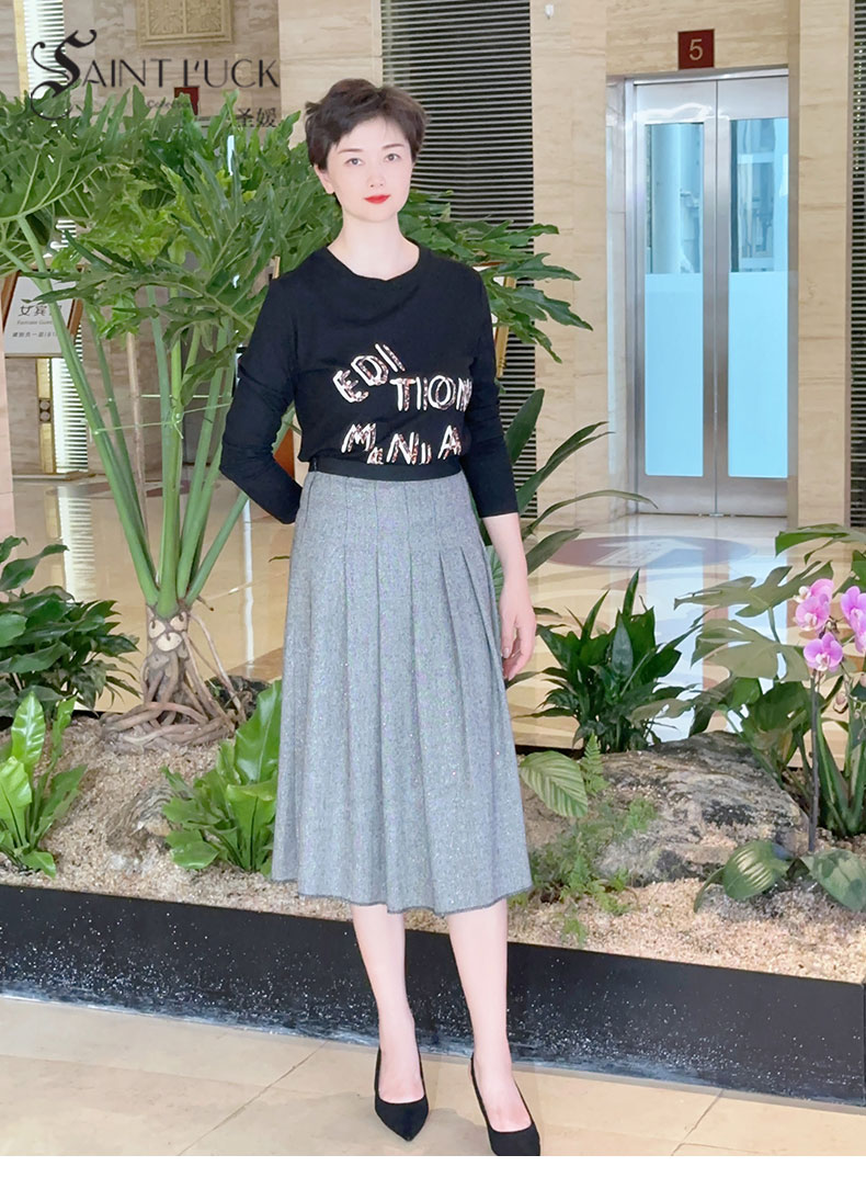 SAINT L’UCK/圣媛媛女装 优雅时尚金丝羊毛半身裙SA320B55