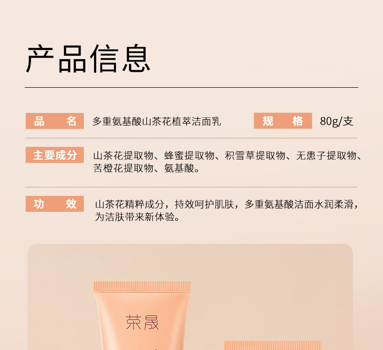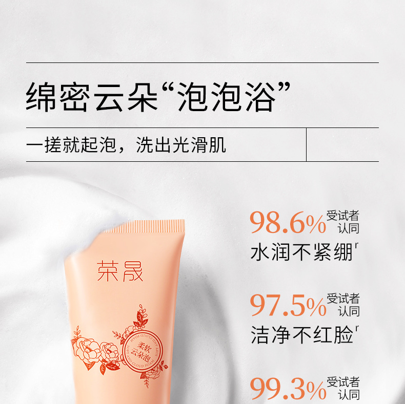 「9.9包邮!限1000支」荣晟氨基酸洗面奶 面部护理云感泡沫多重氨基酸山茶花植萃洁清洁面乳