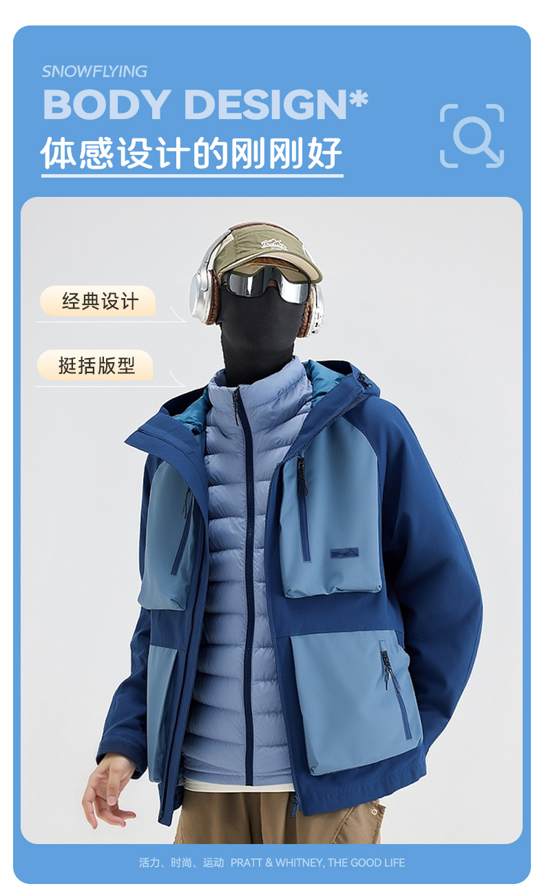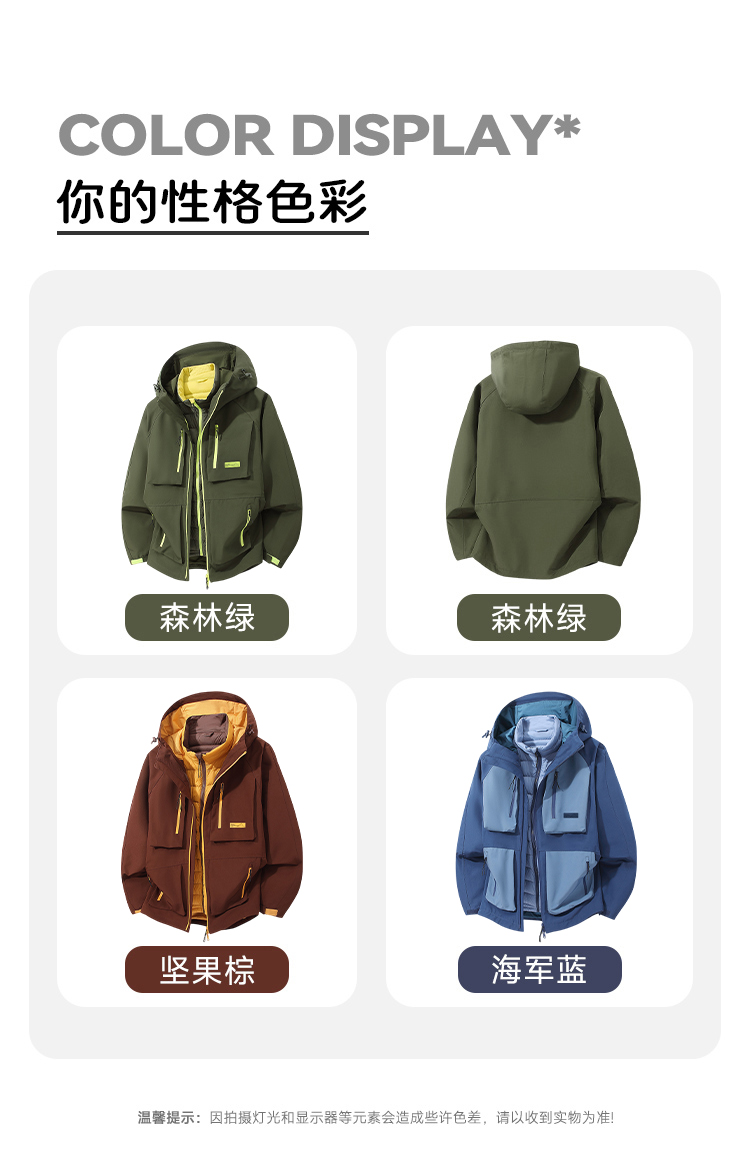 LUCKY DEER/幸运鹿情侣款防风防泼水保暖羽绒三合一