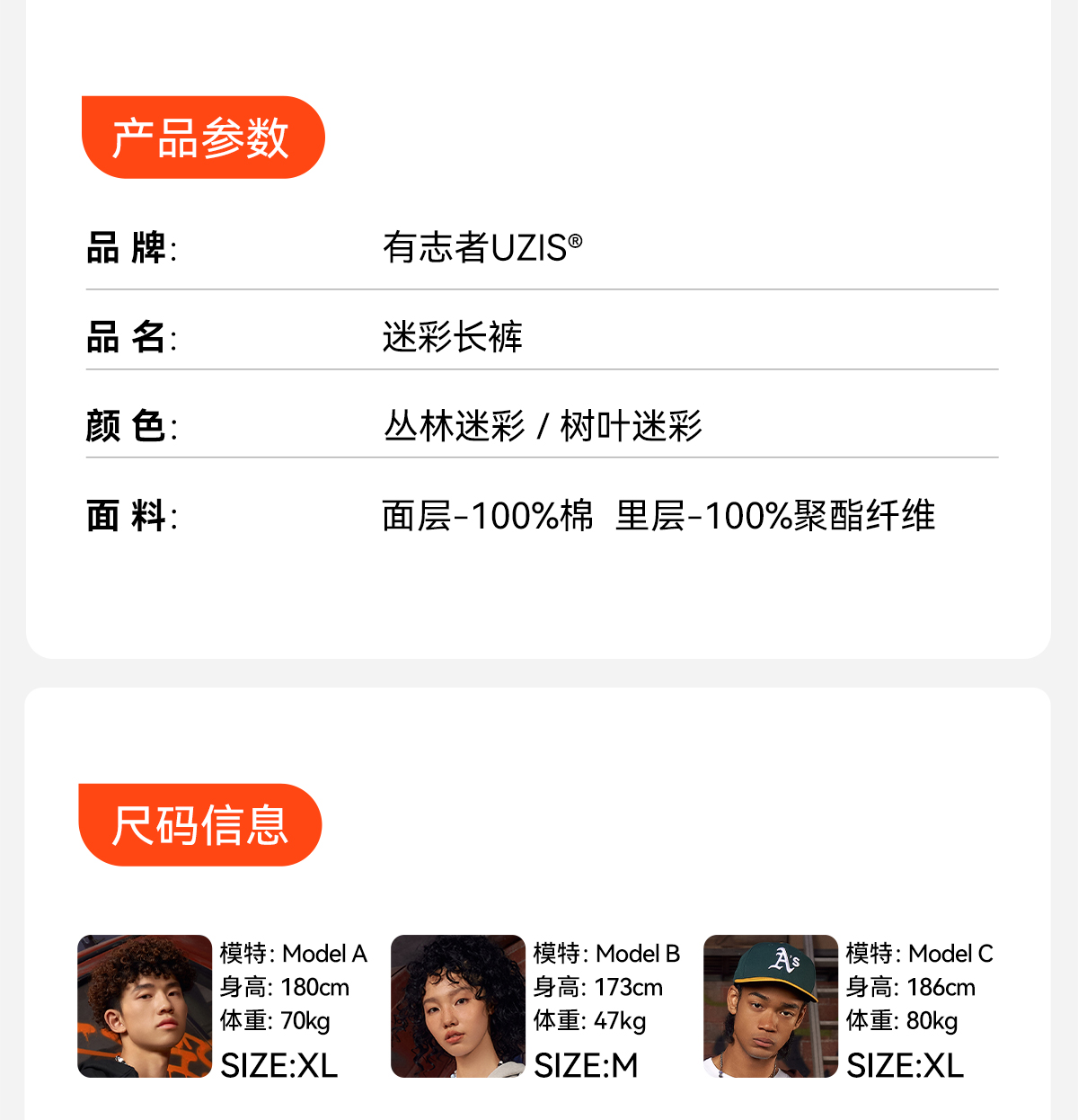 【积分兑换】有志者UZIS美式复古工装裤男直筒秋季户外伞兵裤休闲宽松迷彩长裤