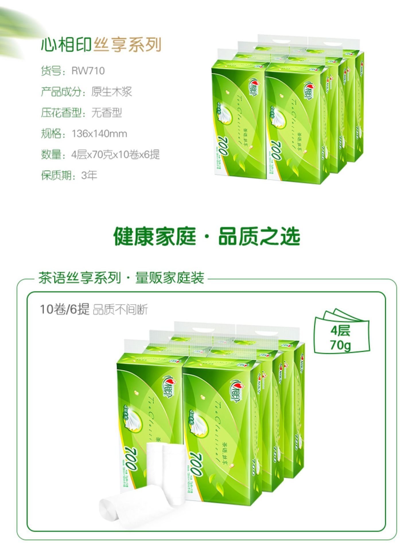 心相印茶语无芯卷纸,加厚4层700g,柔韧舒适,吸水性强,有效防止纸屑飞扬。家用实惠装,让你的生活更健康!