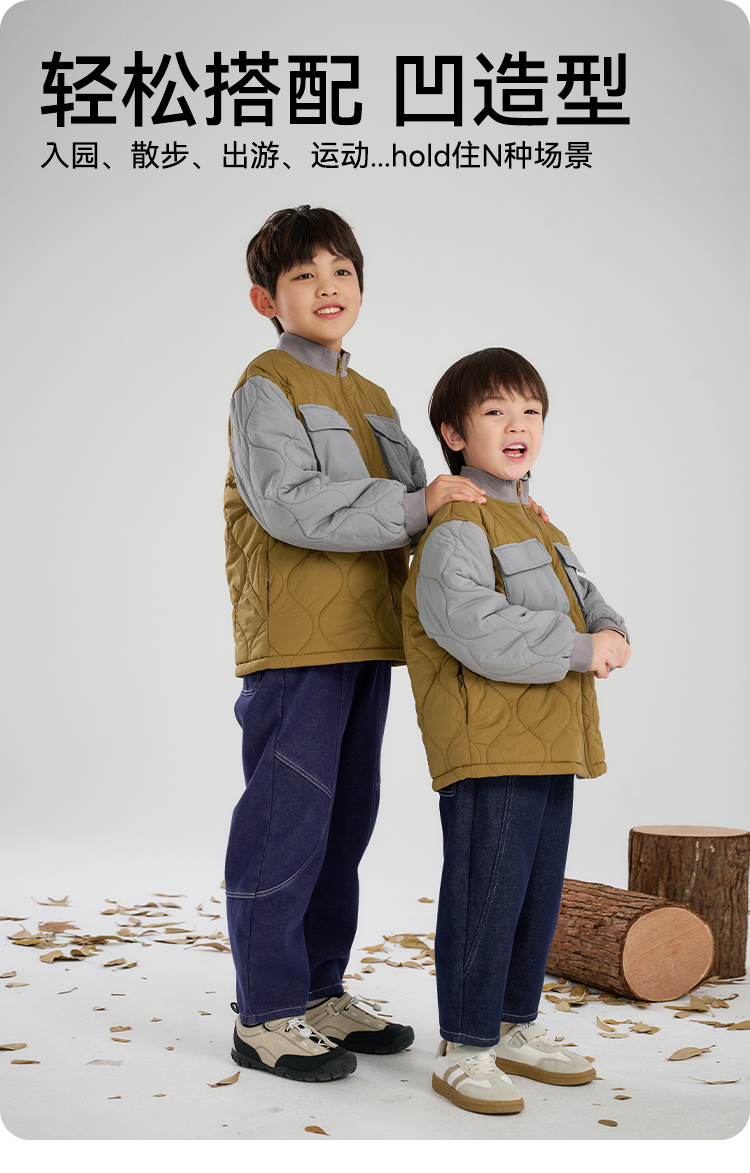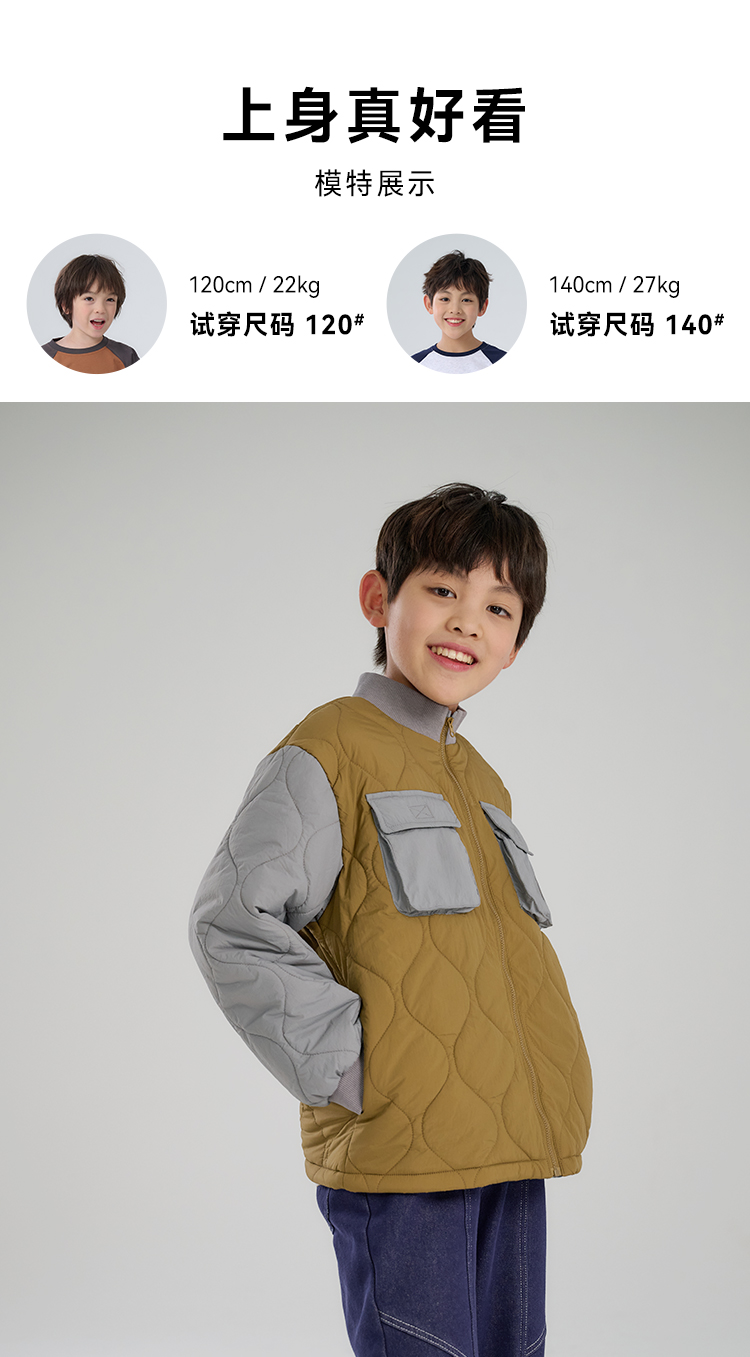 【棉花堂】中大童90-160码儿童梭织夹棉秋冬外套聚