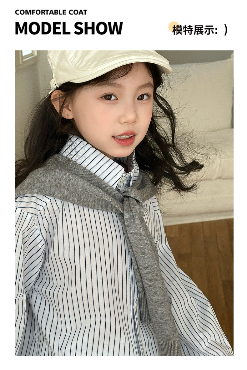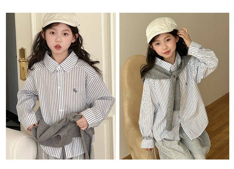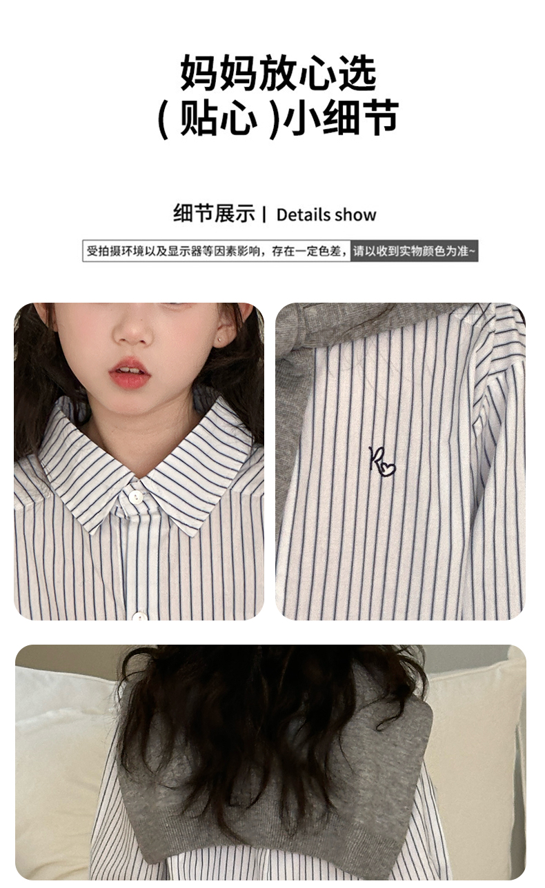 【麦乐拉 5035披肩条纹衬衣】蓝白竖条纹衬衫 胸前刺绣小设计 宽松百搭 怎么搭都好看