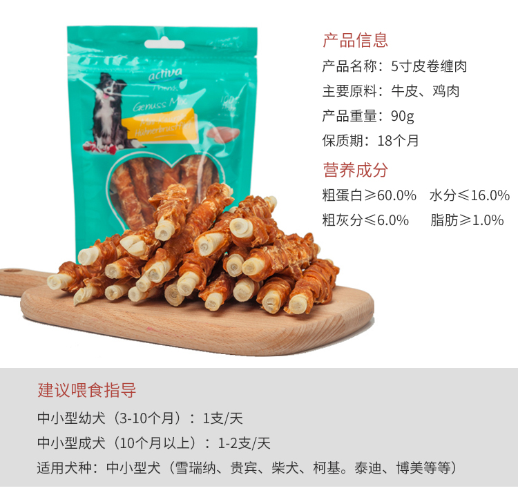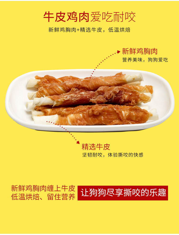 益和5寸皮卷缠肉狗狗磨牙棒磨牙洁齿彩袋装90g