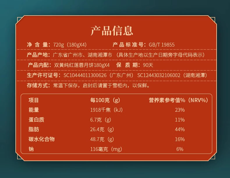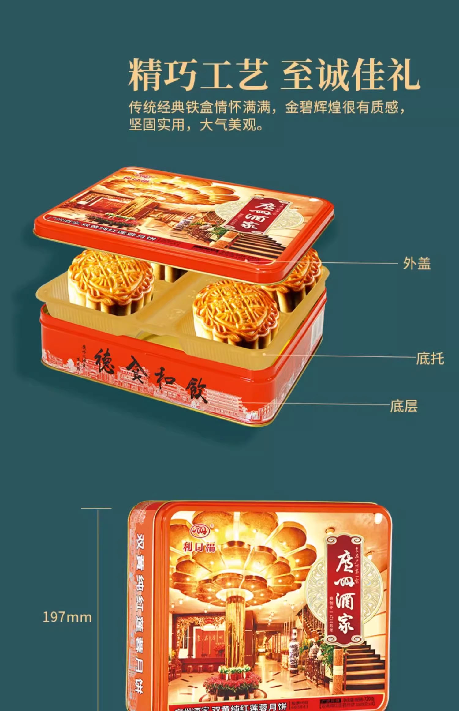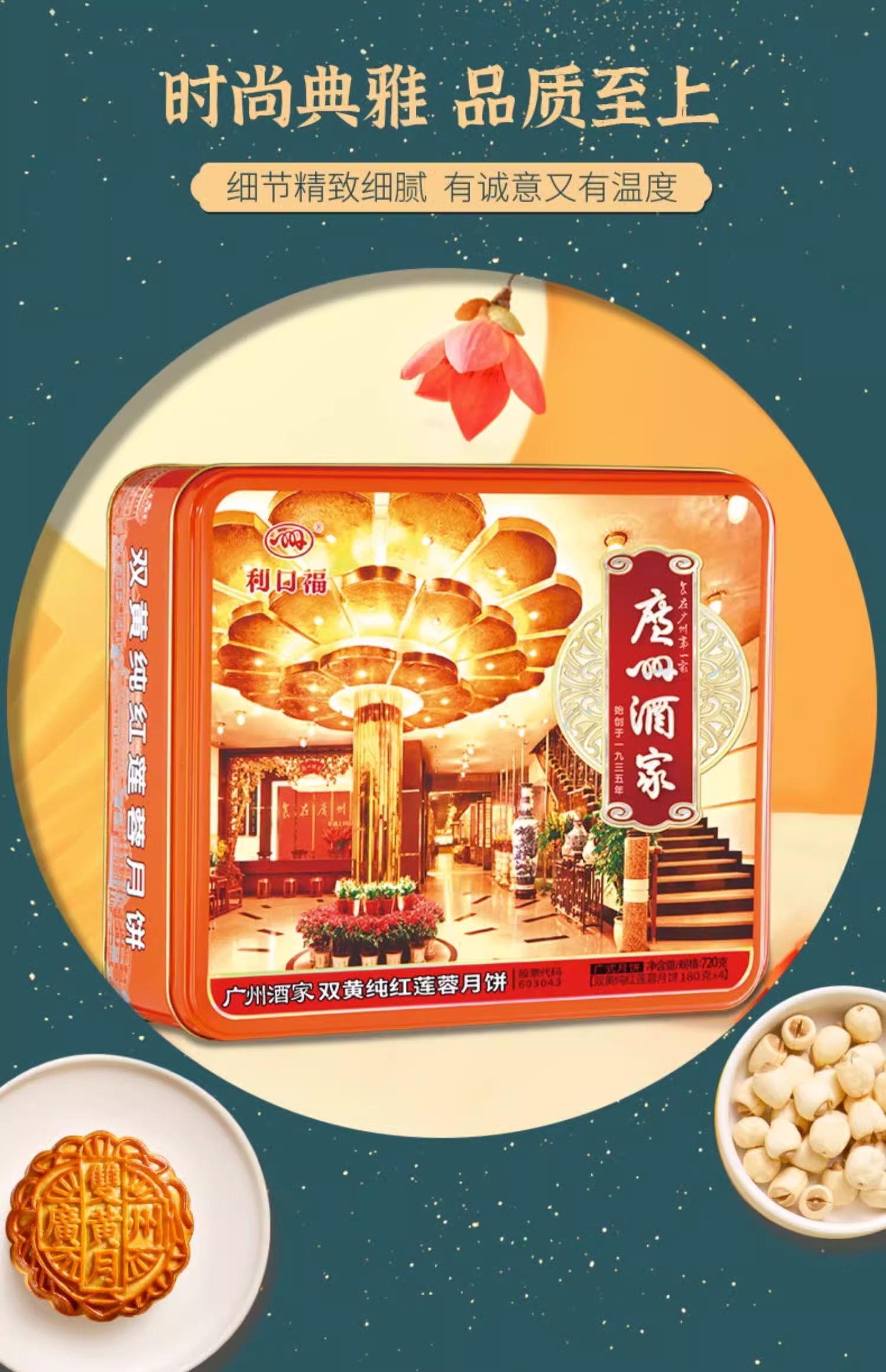 【团购】广州酒家经典款 | 双黄纯红莲蓉月饼 180g*4粒装