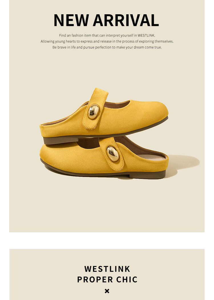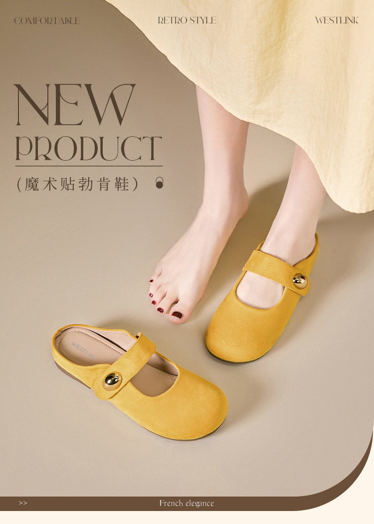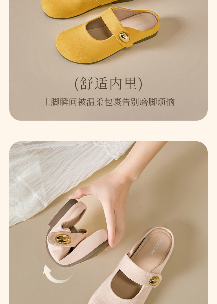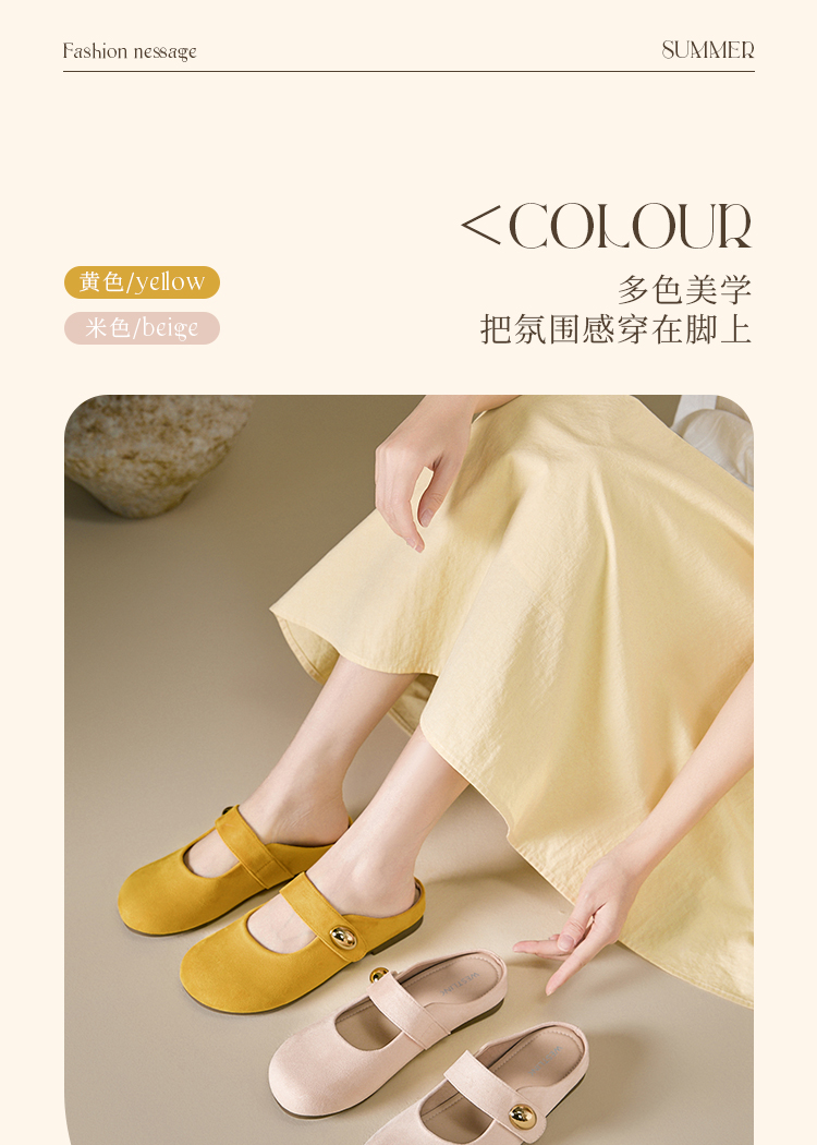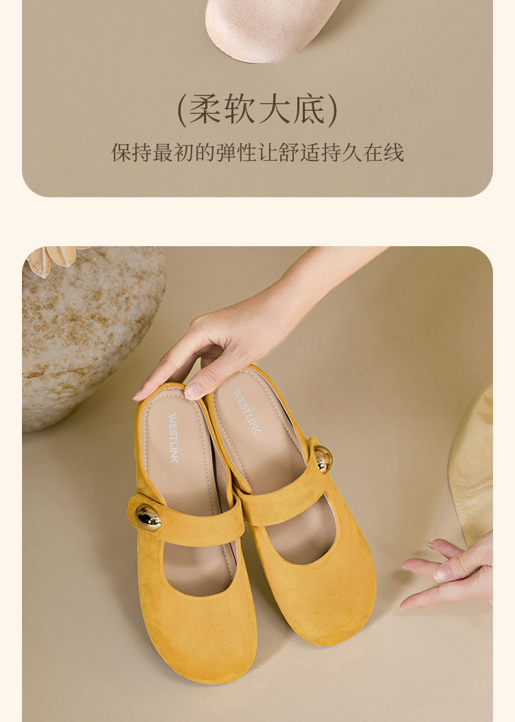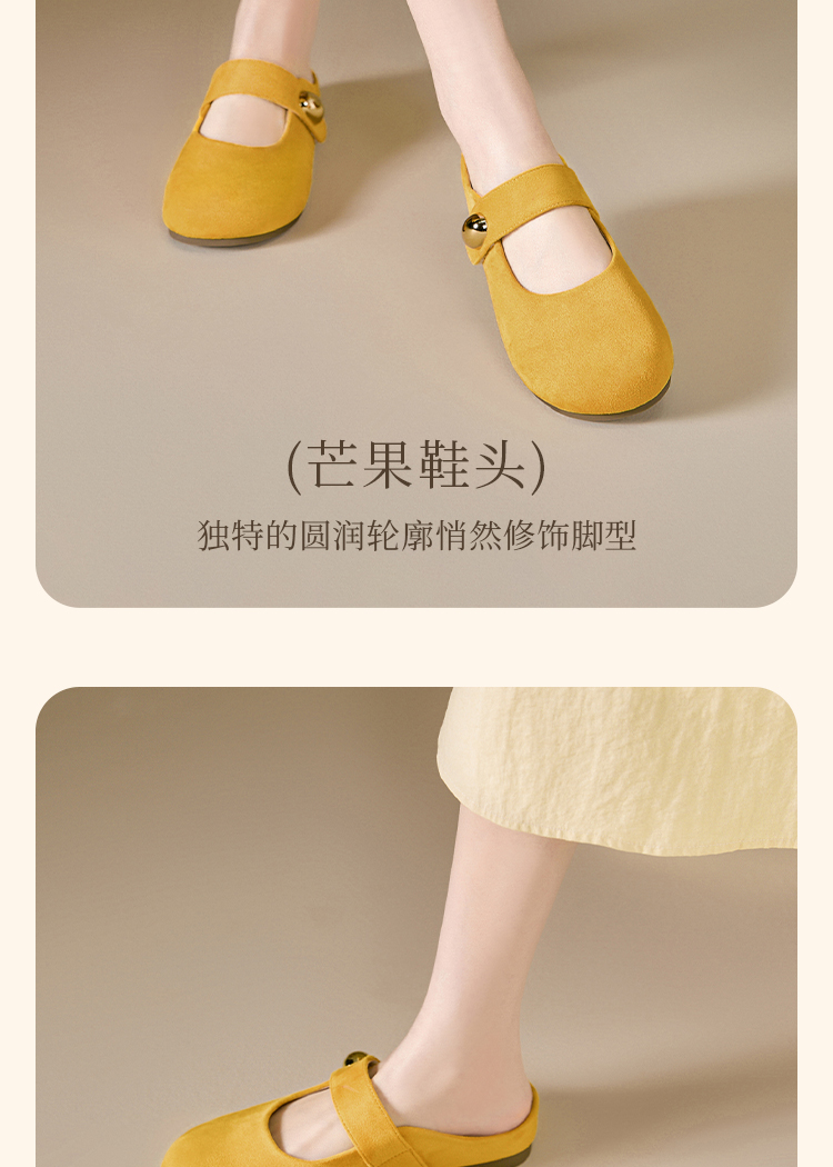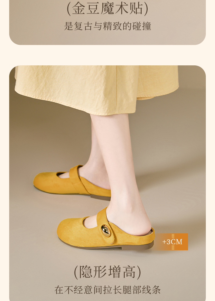 【限时秒杀】西遇包头半拖鞋女外穿新款夏季魔术贴玛丽珍鞋平底黄色勃肯鞋V1256829