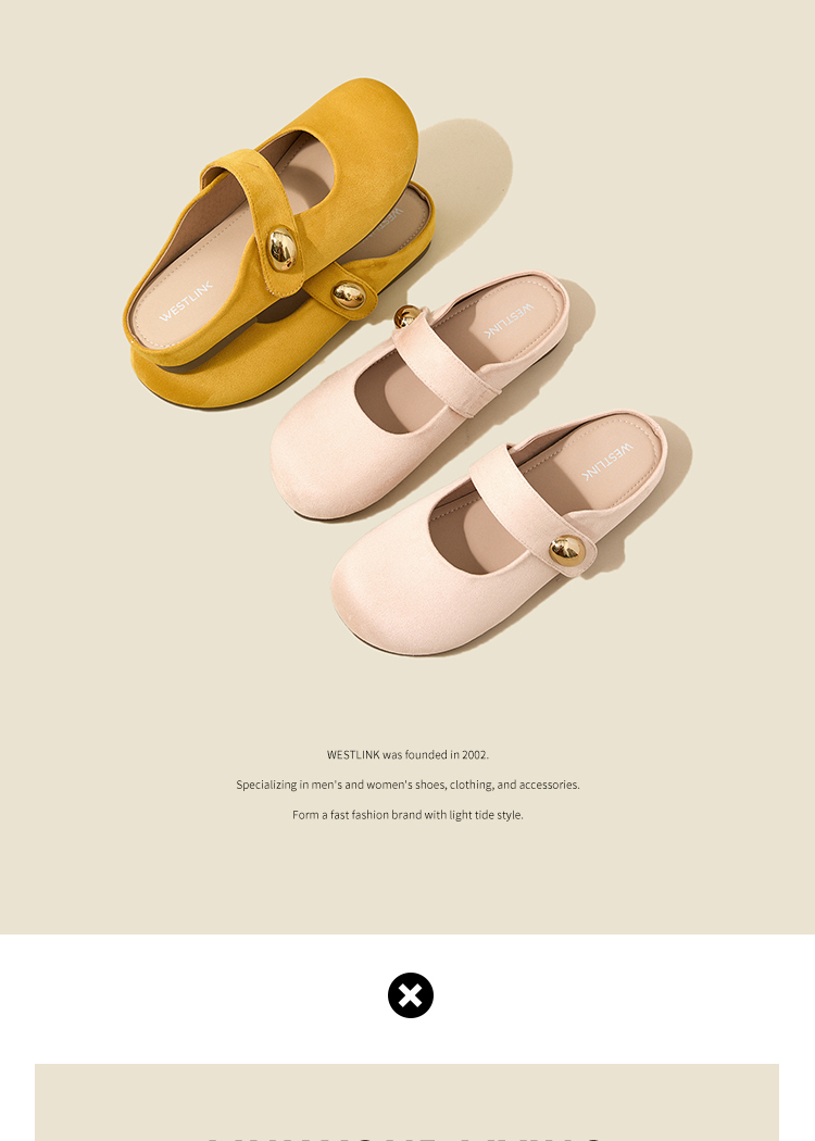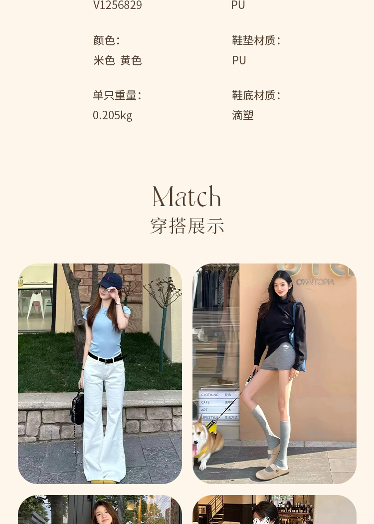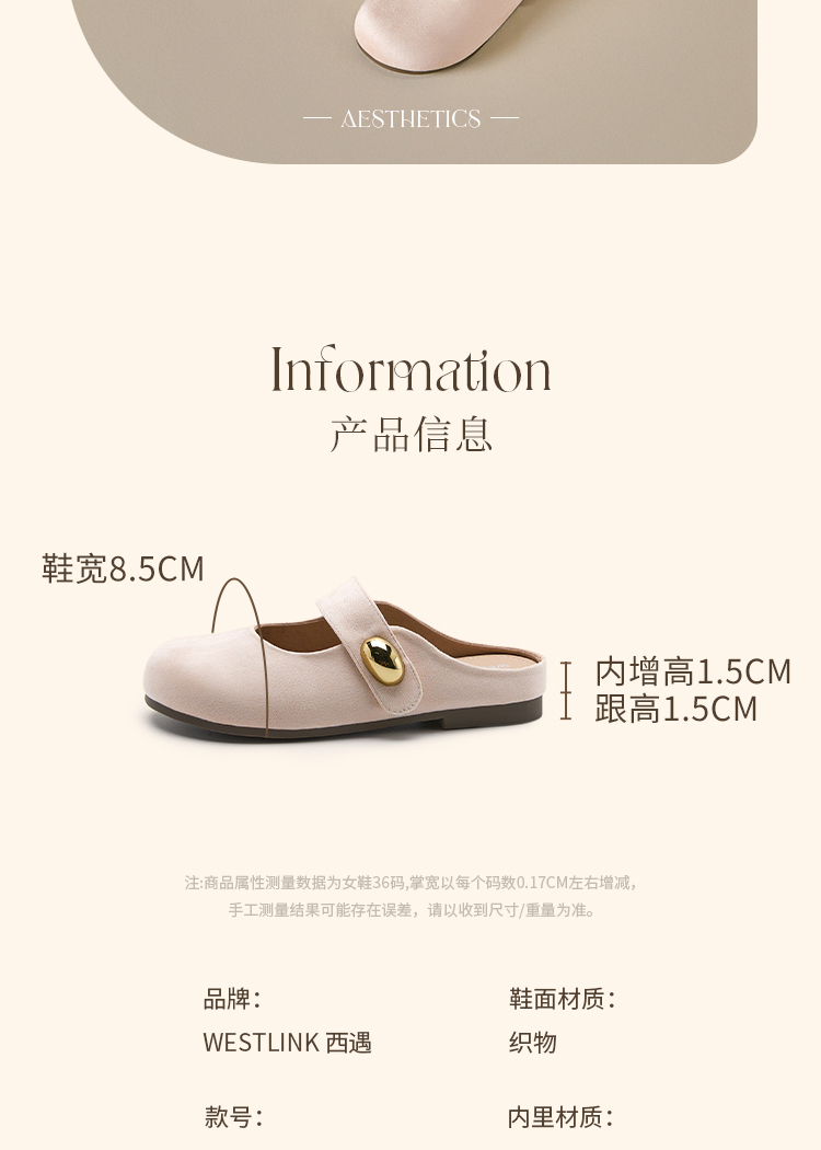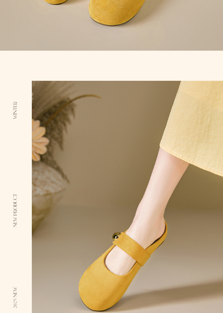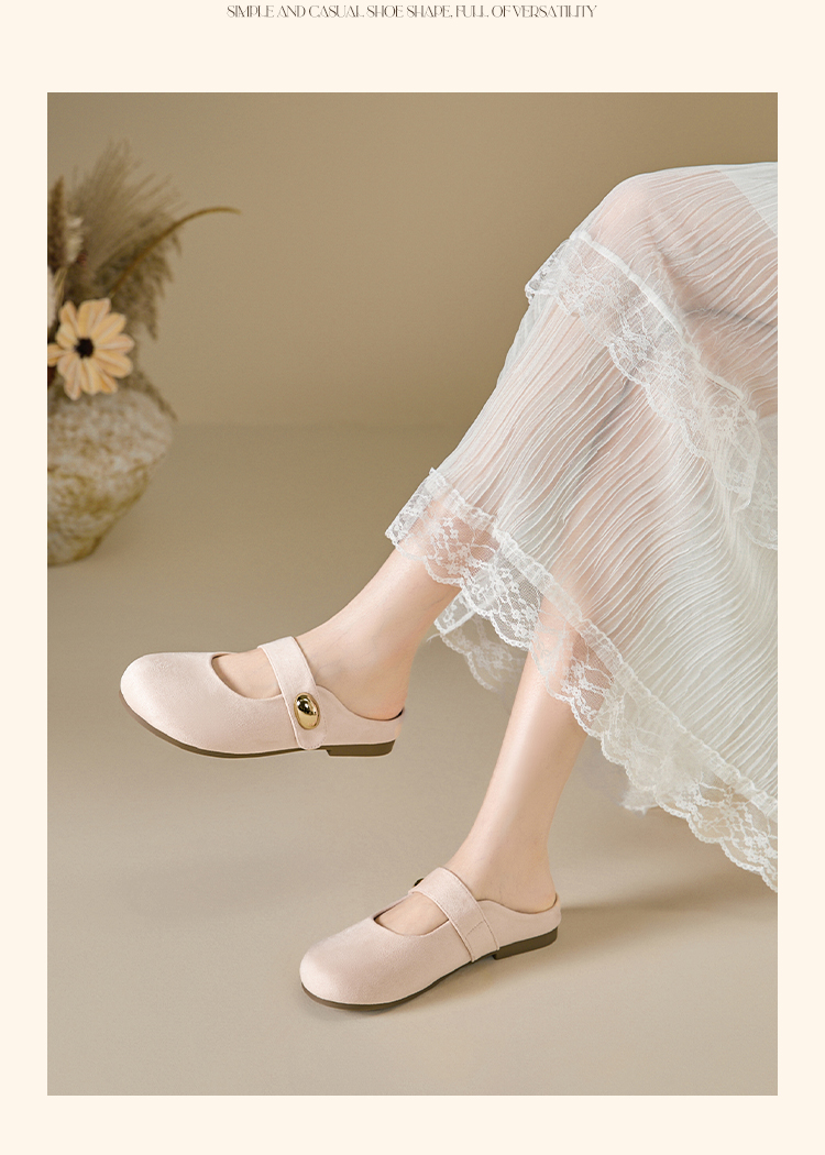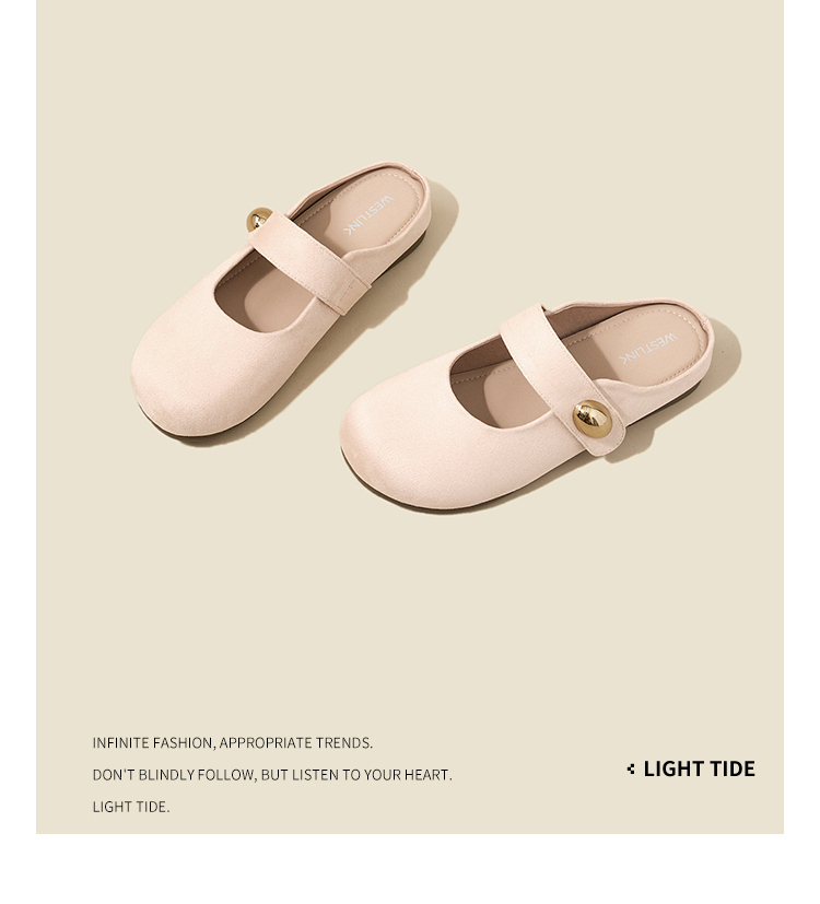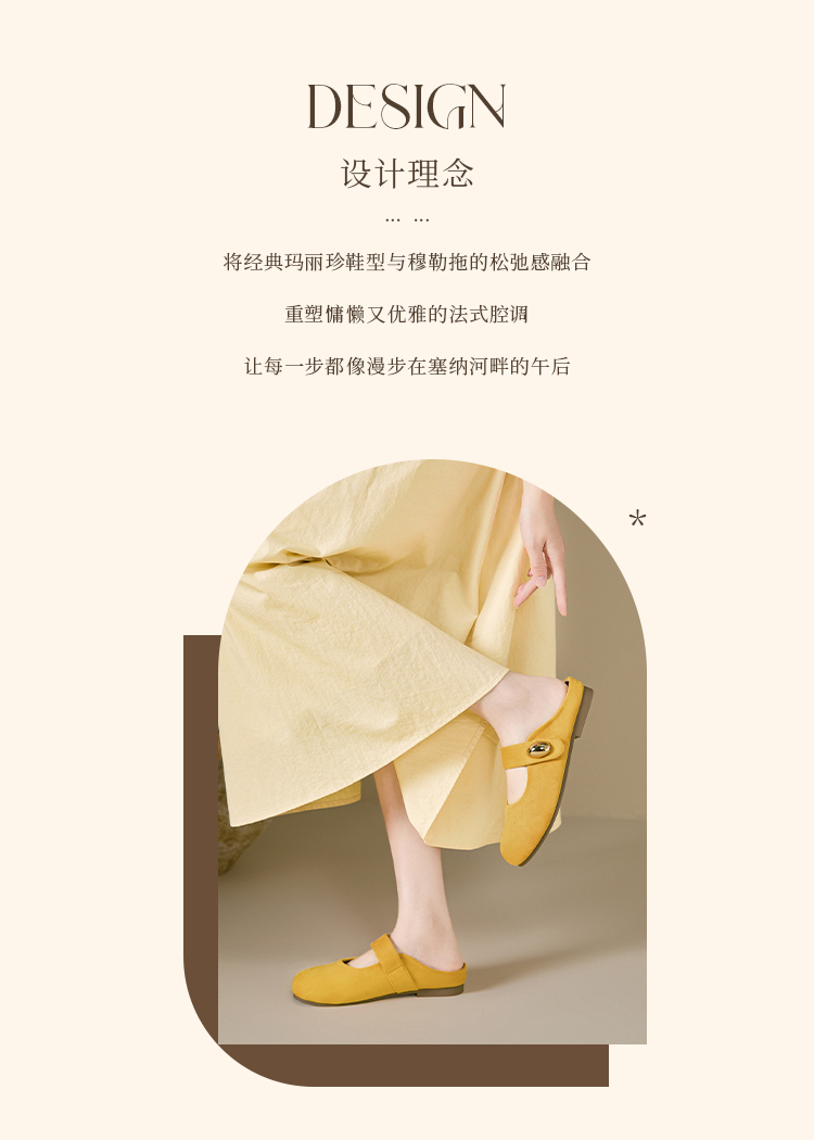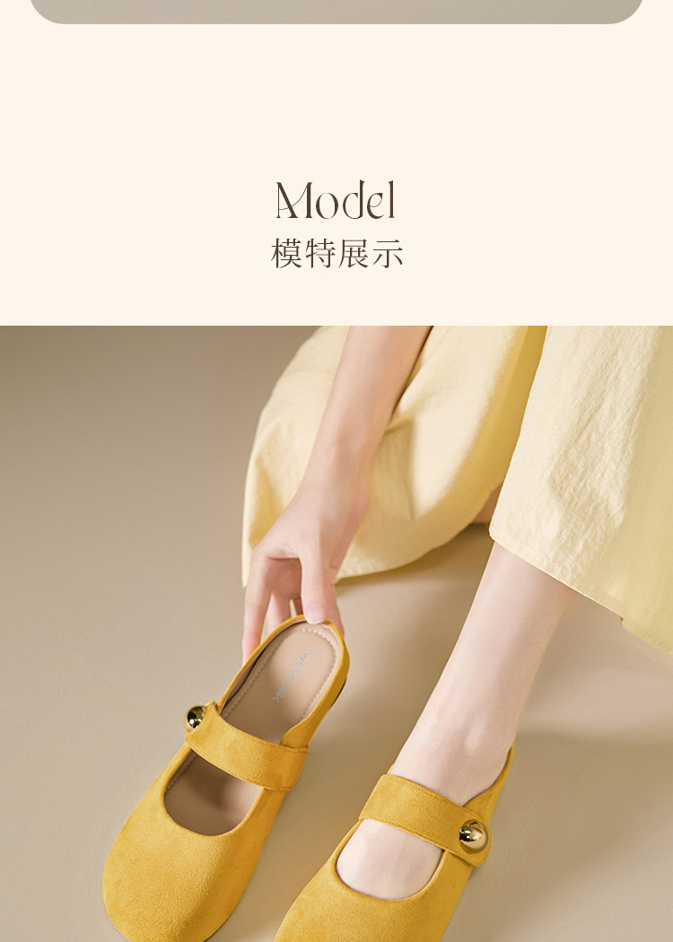 【限时秒杀】西遇包头半拖鞋女外穿新款夏季魔术贴玛丽珍鞋平底黄色勃肯鞋V1256829