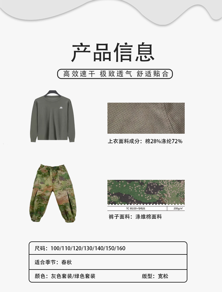 《追风少年》新款春秋儿童套装 简约工装裤搭配透气吸汗圆领衫 运动小健将 健康我最棒