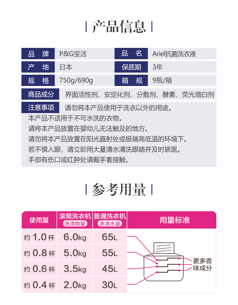 宝洁 强效抗菌洗衣液 690g/瓶