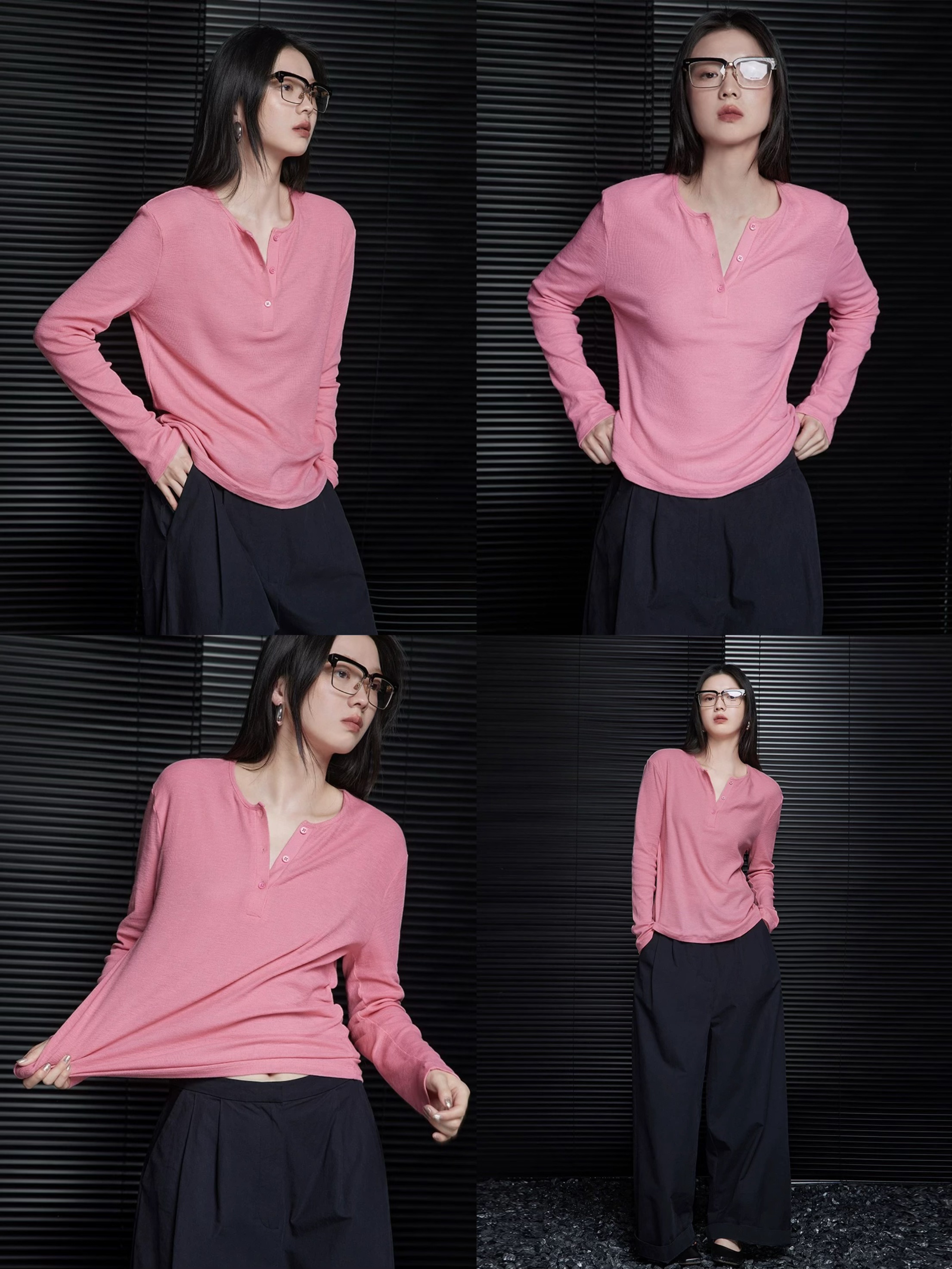 经典小圆领+半开襟设计,是早秋穿搭的小心机。