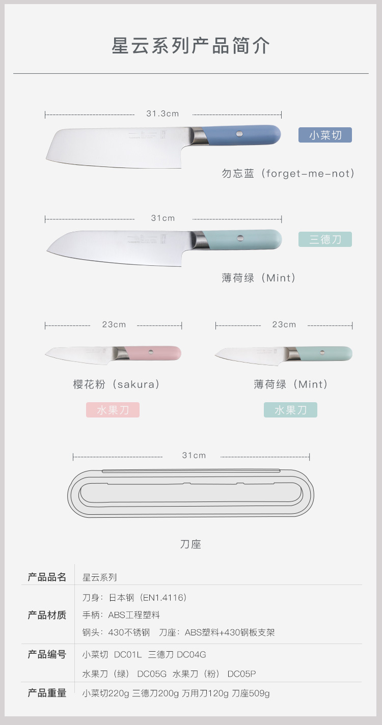 拓 星云菜刀切片刀进口不锈钢家用厨房切肉刀三德刀水果组合