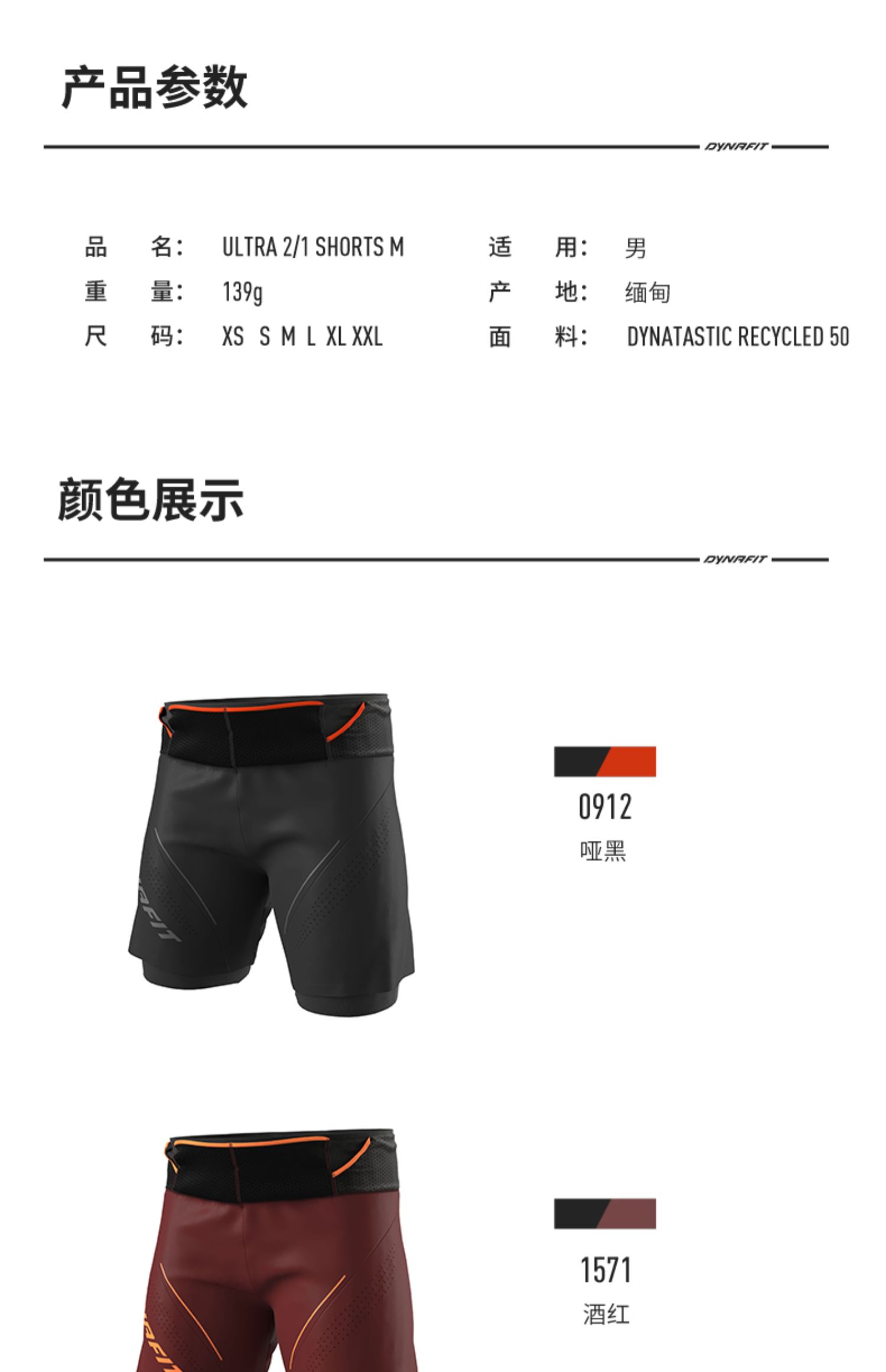 DYNAFIT男式短裤 08-0000071458 ULTRA 2/1 SHORTS M
