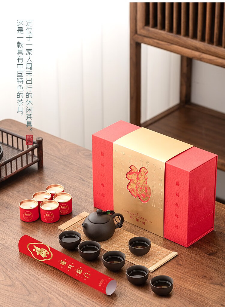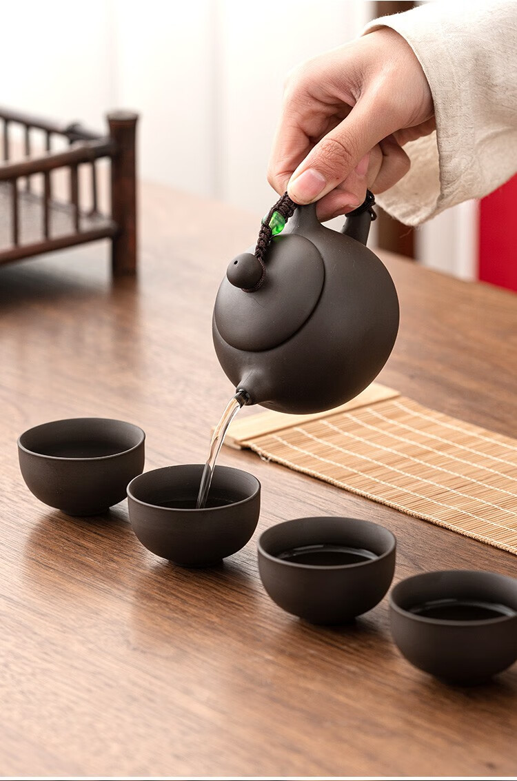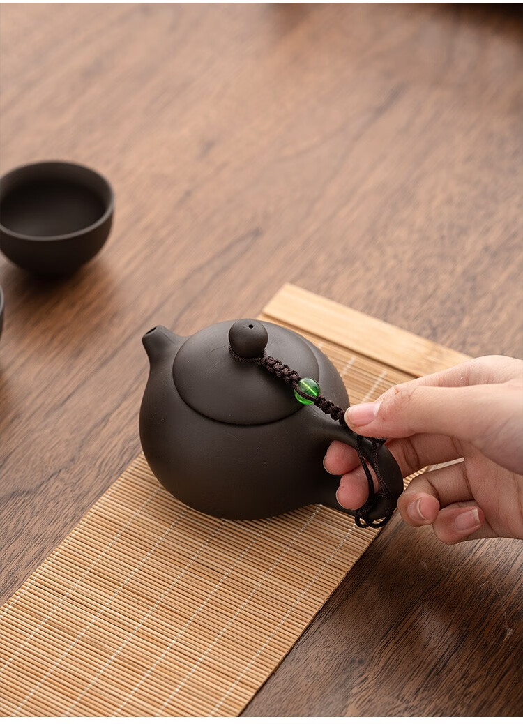 青瓷侧把壶旅行套装青瓷皮包旅行茶具