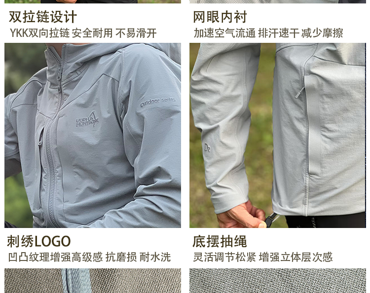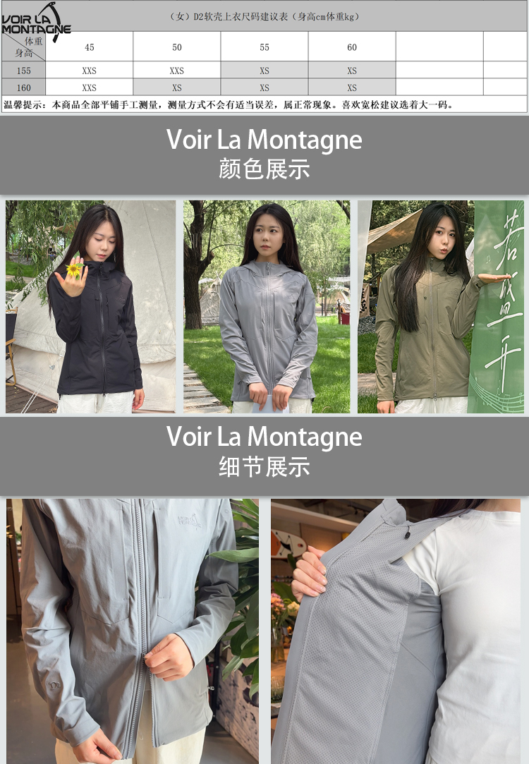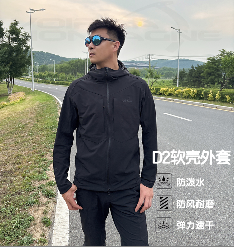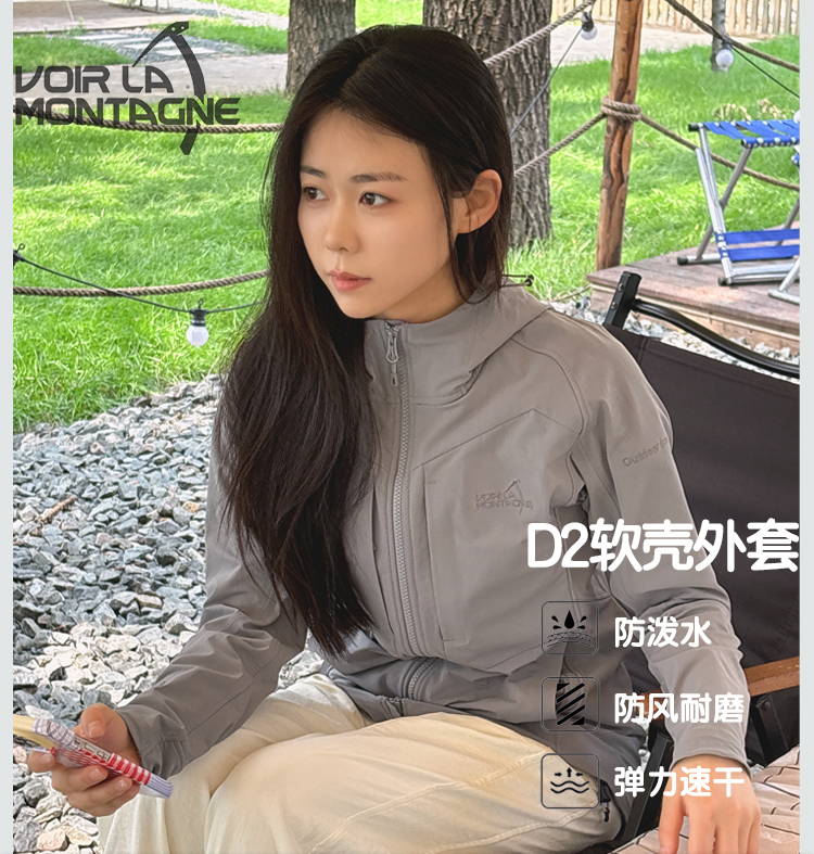 【终身保修】Voir La Montagne/见山D2情侣款连帽软壳上衣轻薄弹力防泼水外套