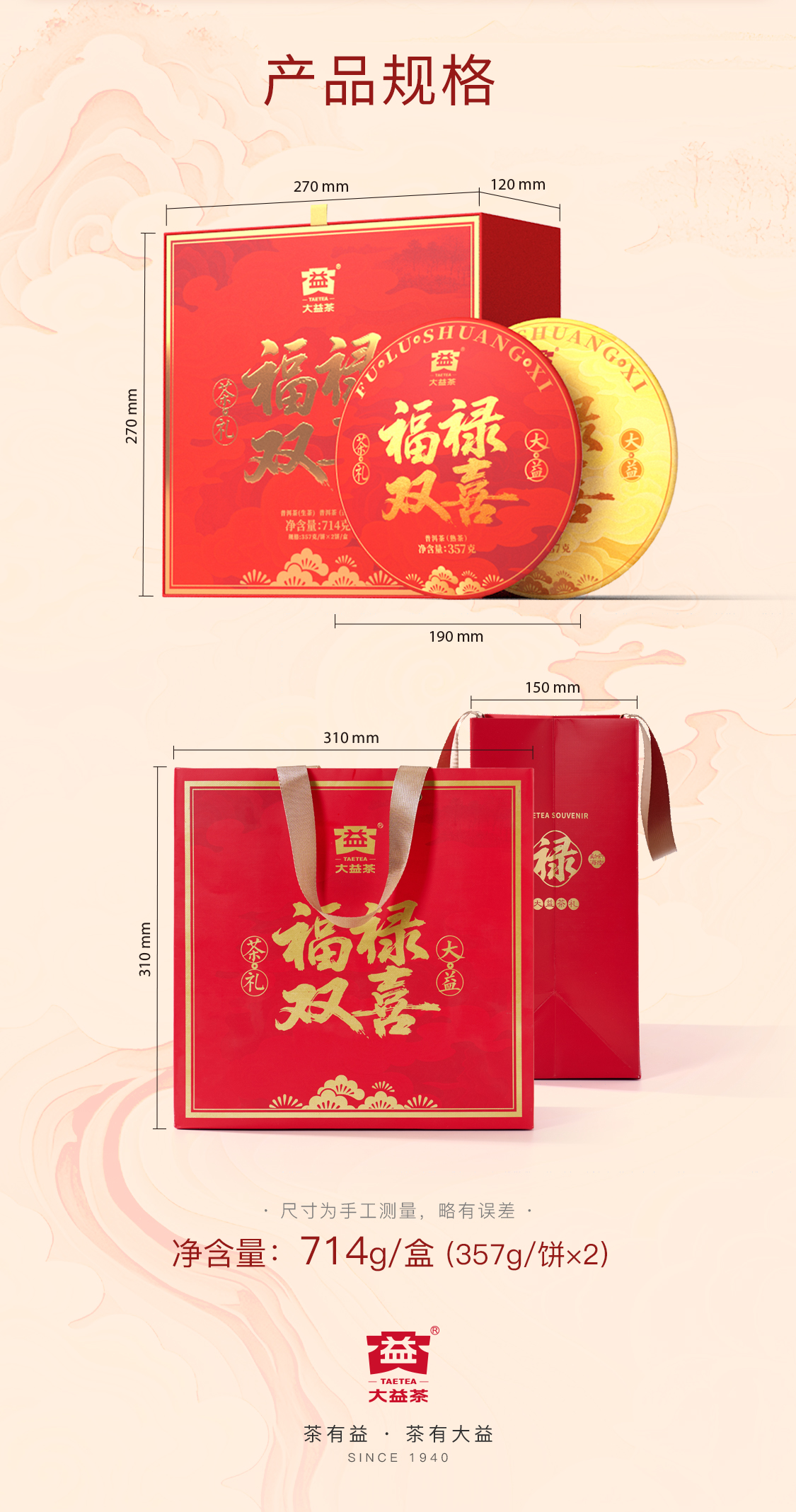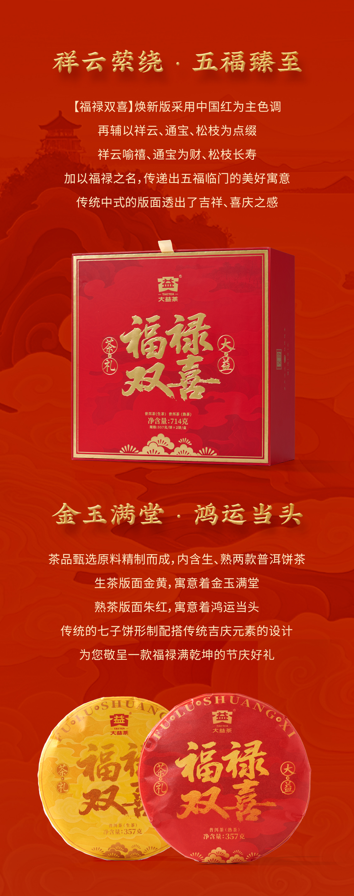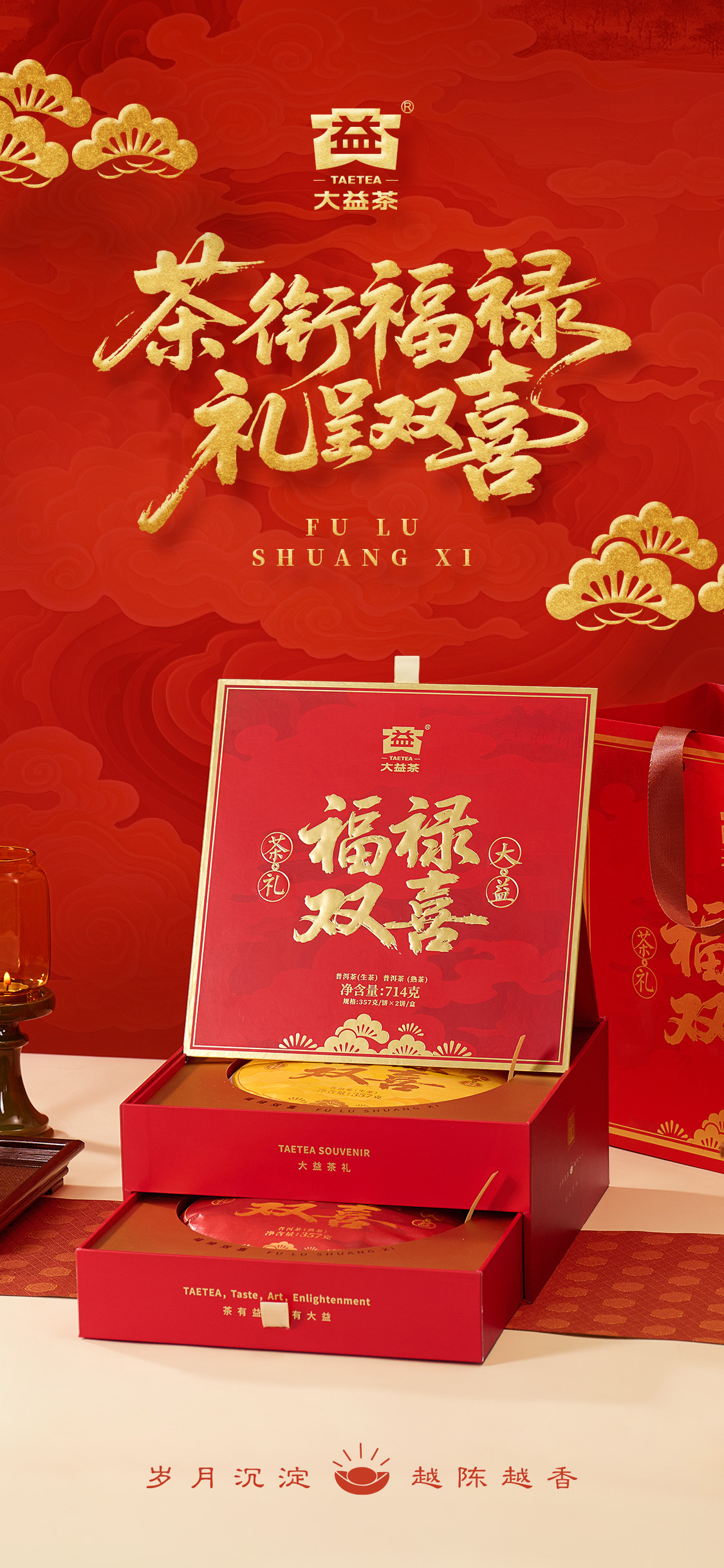 大益普洱茶福禄双喜礼盒生熟茶组合礼盒装357g*2饼