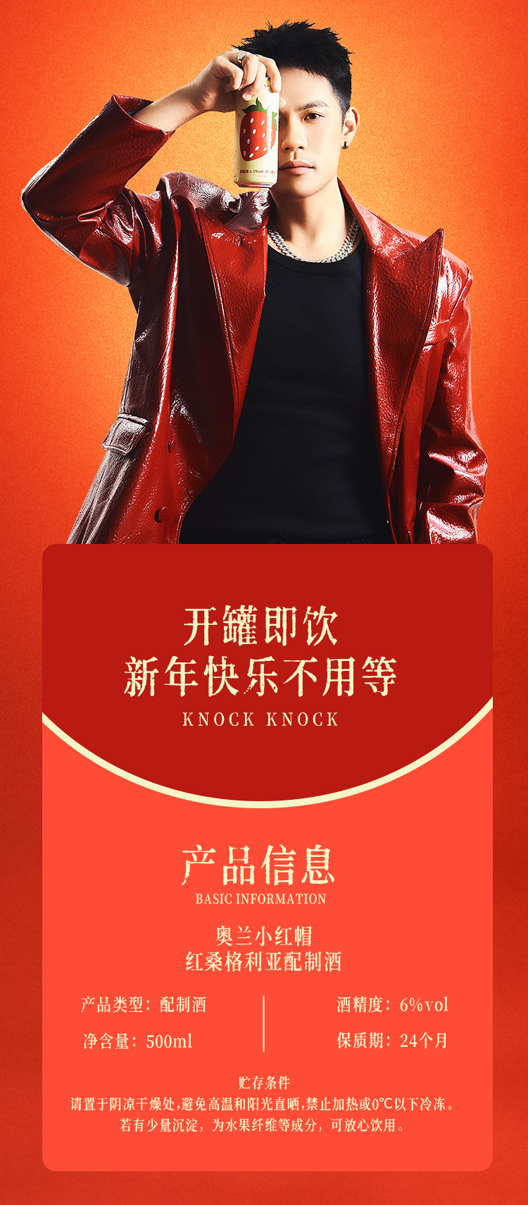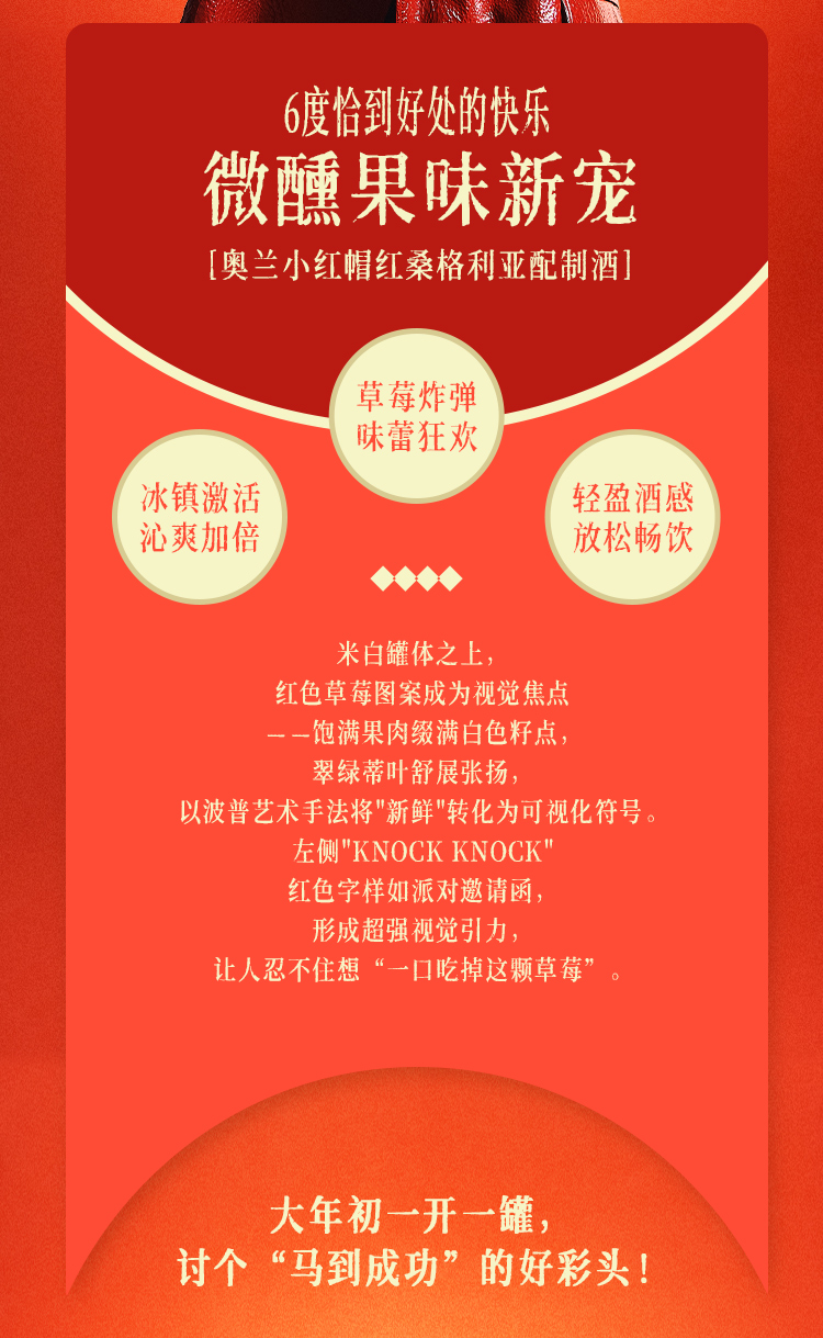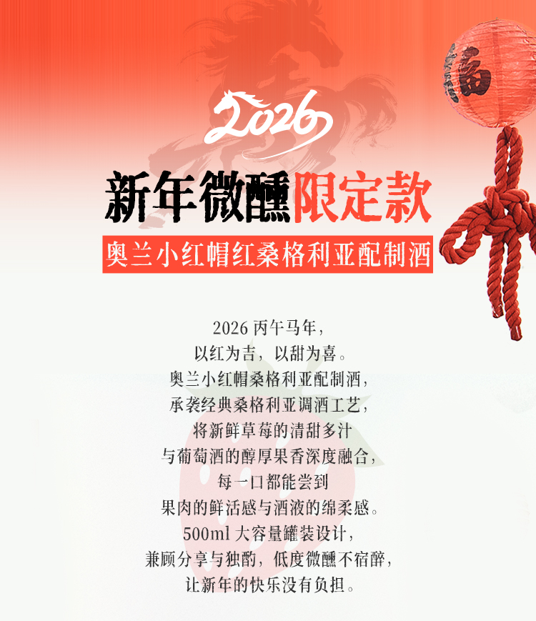 【新品】奥兰小红帽红桑格利亚配制酒6度500ml*6 草莓果汁 低度微醺果酒