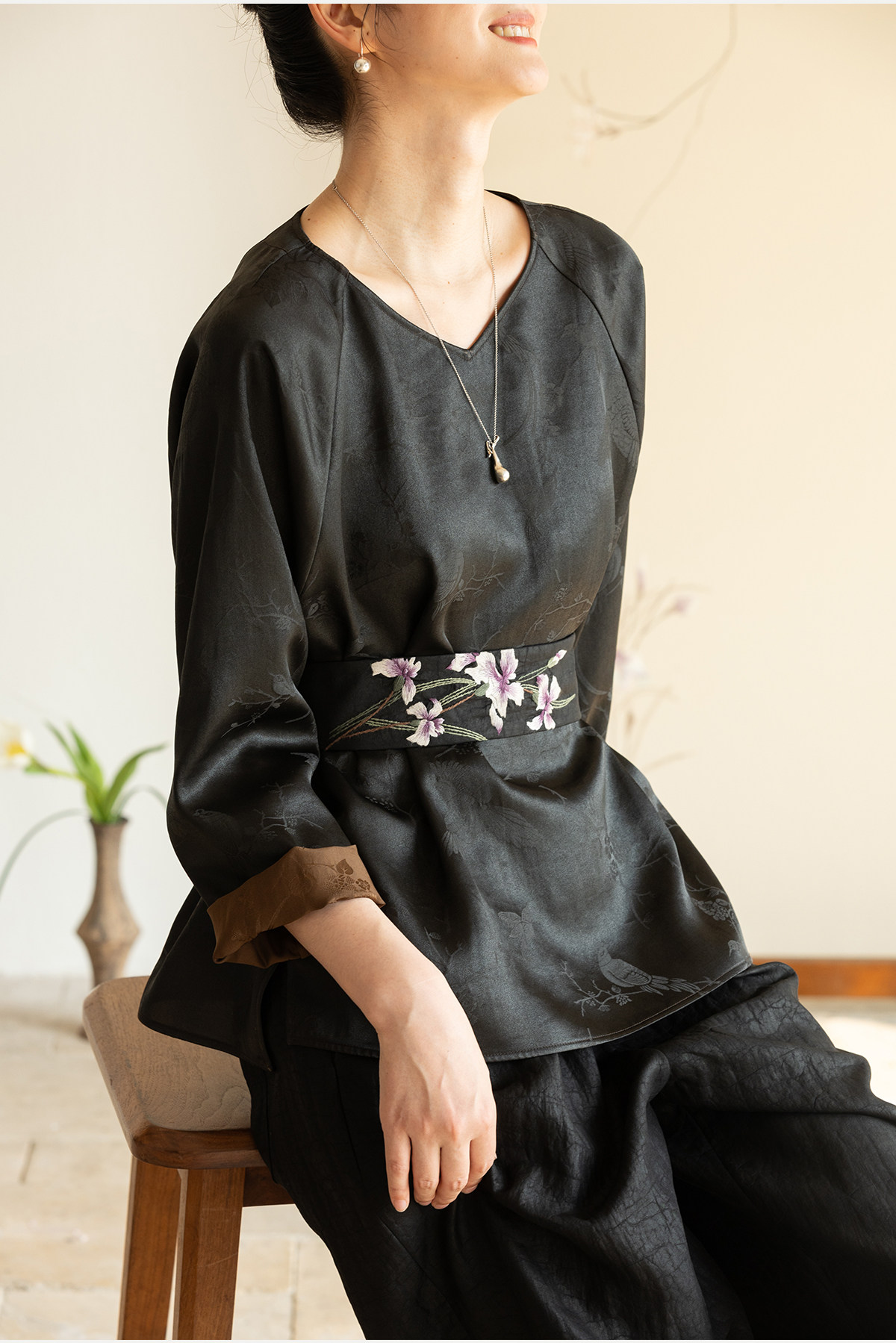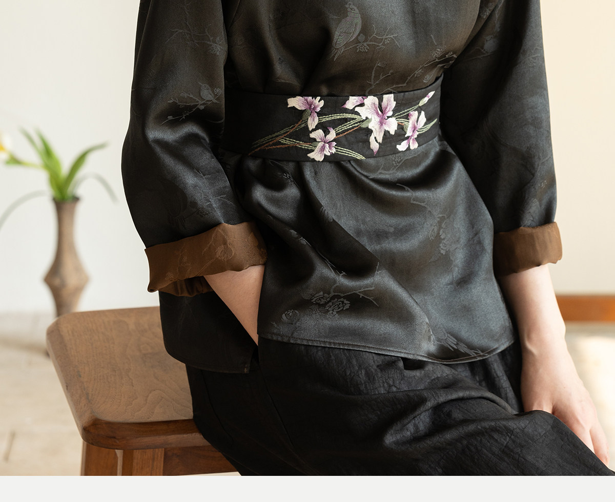 牧衣游原创 重磅龟裂纹手工刺绣香云纱腰封 沐雪【不支持会员折】