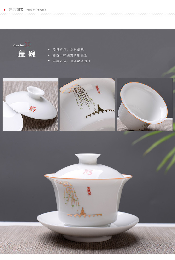 【茶具】白瓷盖碗陶瓷3.8寸大号敬茶杯创意功夫茶具三才盖碗