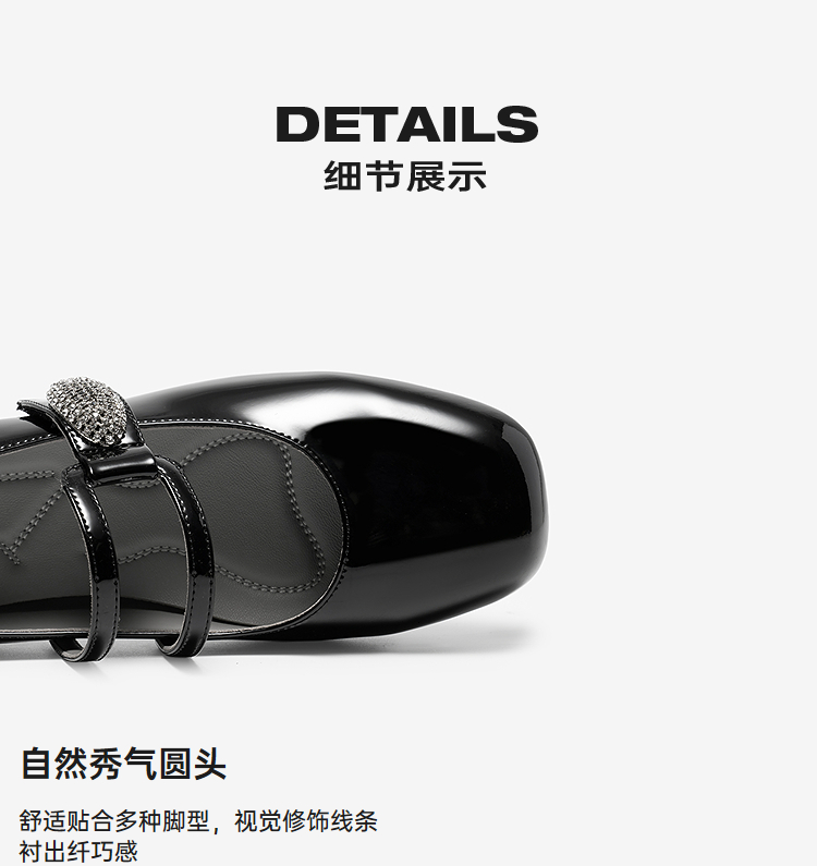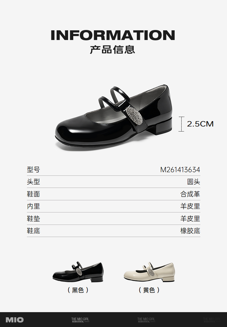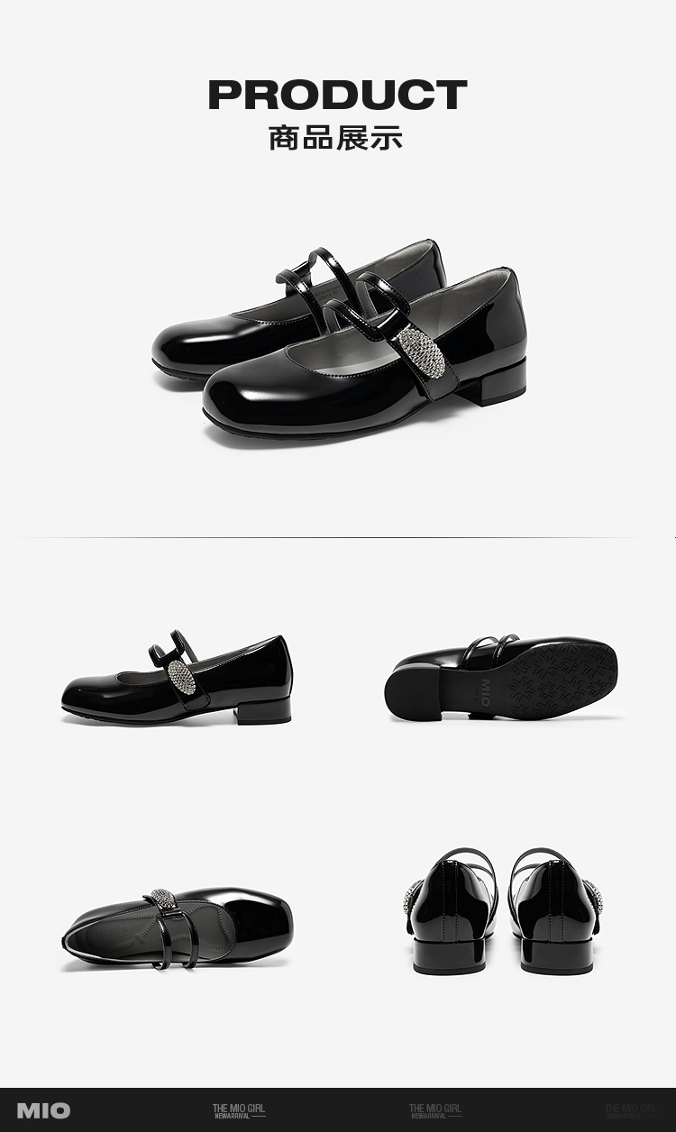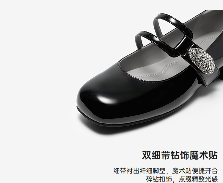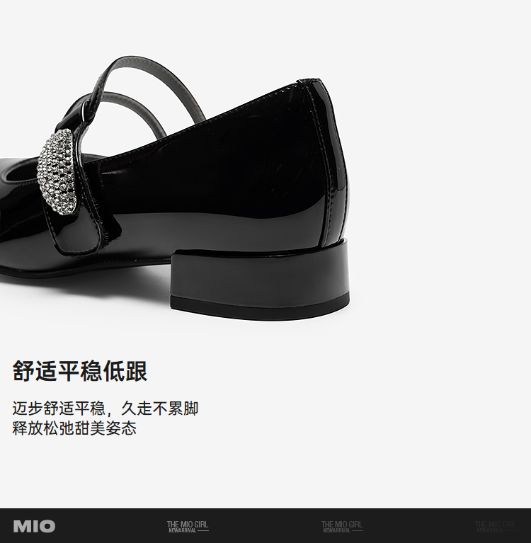 MIO米奥玛丽珍鞋2026春季新款圆头粗跟闪钻饰扣魔术贴女单鞋M261413634