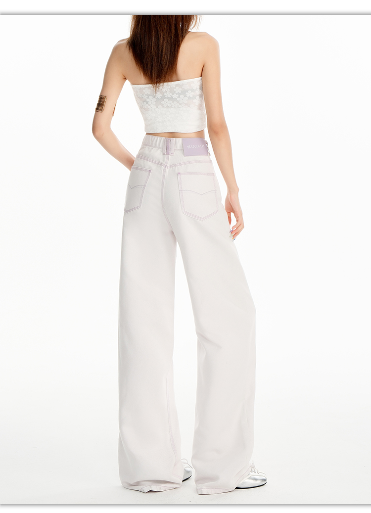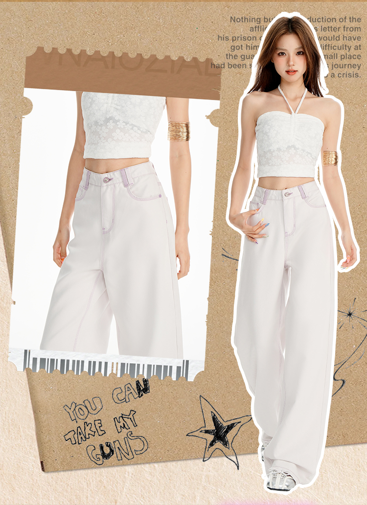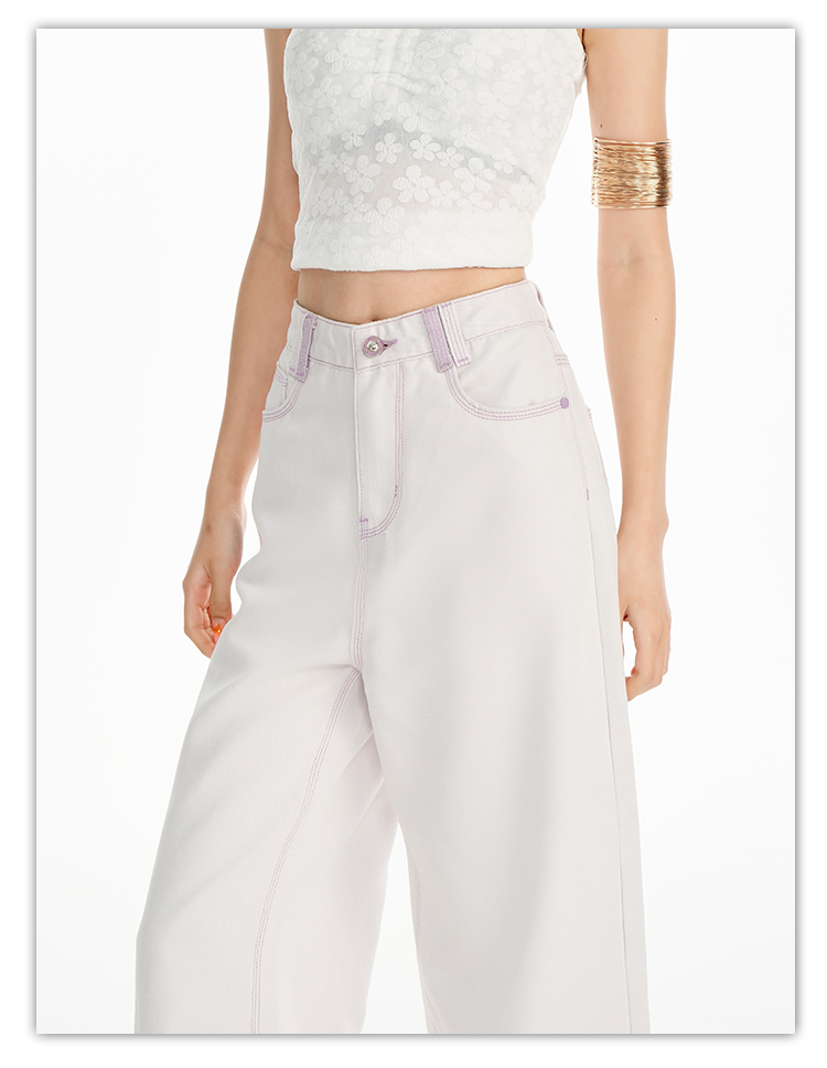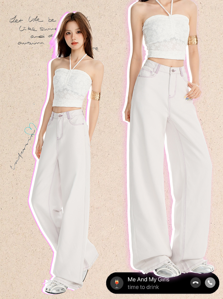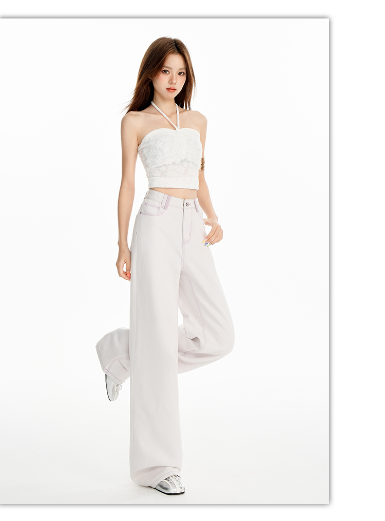 罗蒙女士高腰直筒牛仔裤宽松显瘦时尚百搭长裤舒适休闲通勤女裤