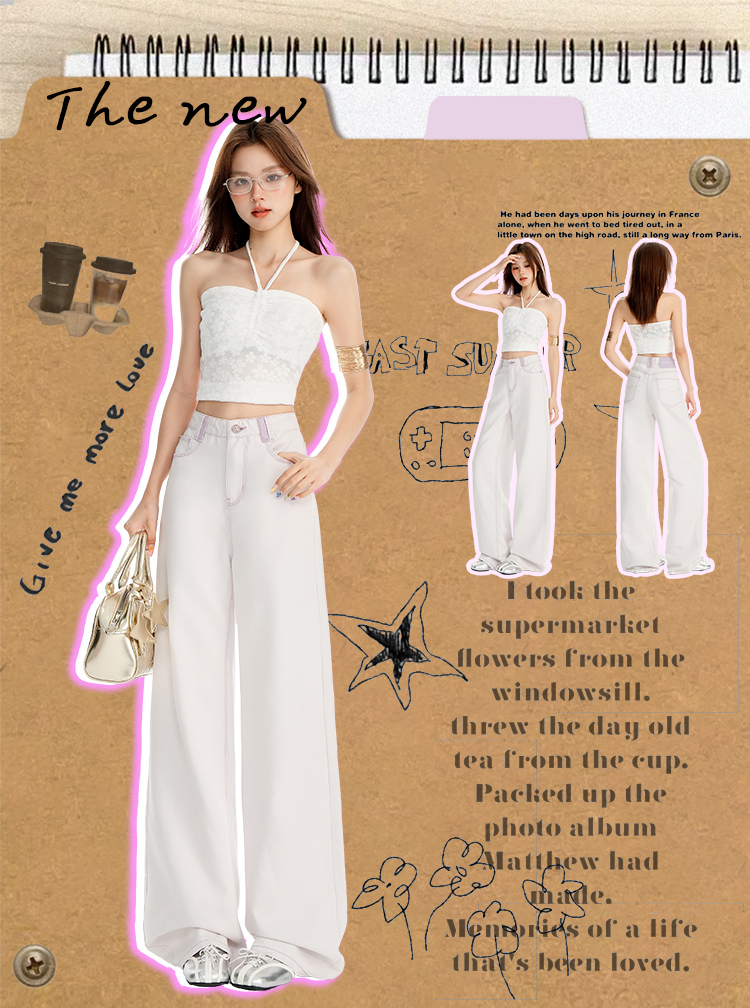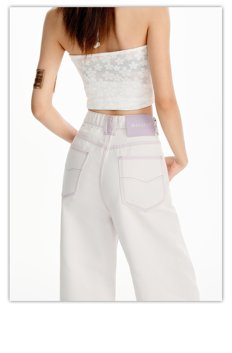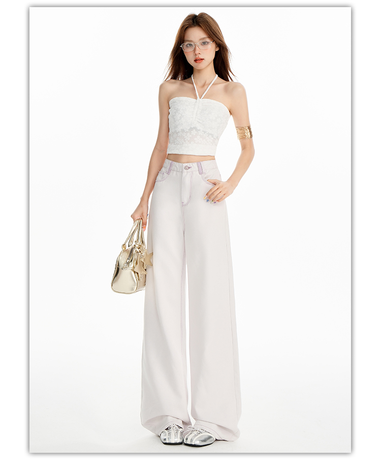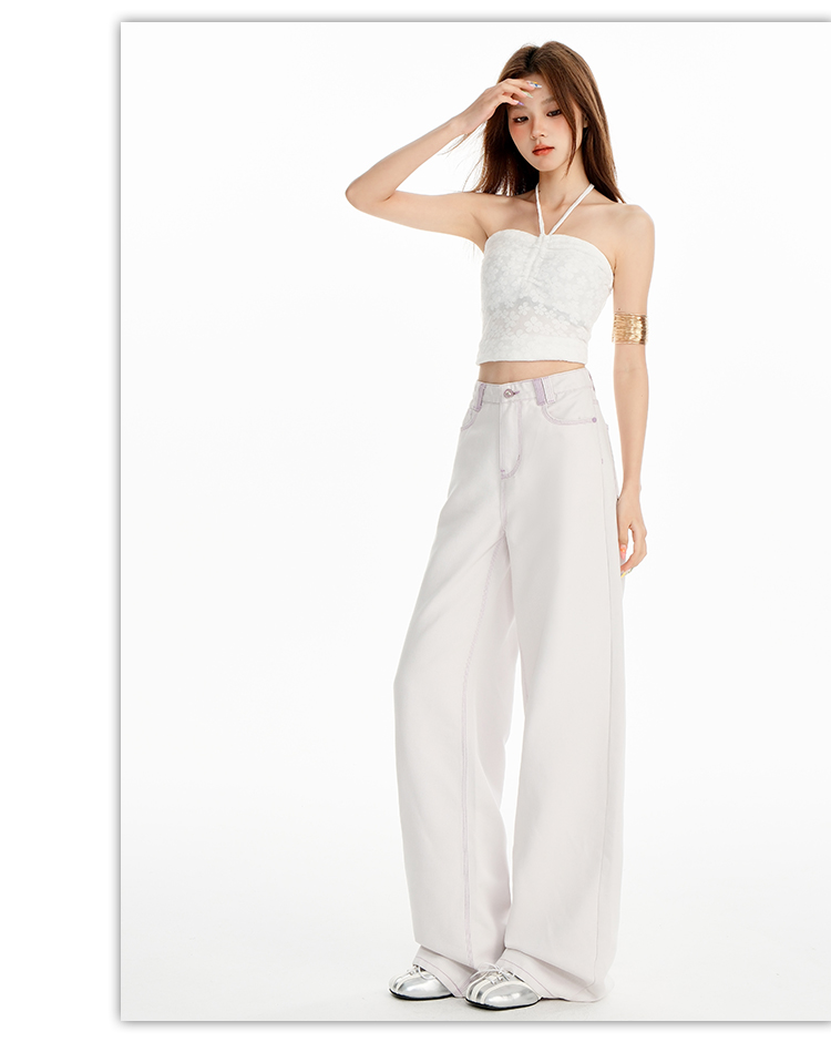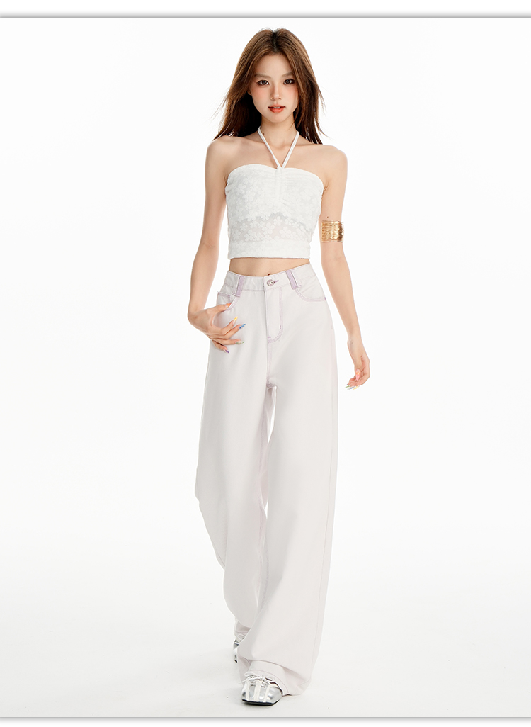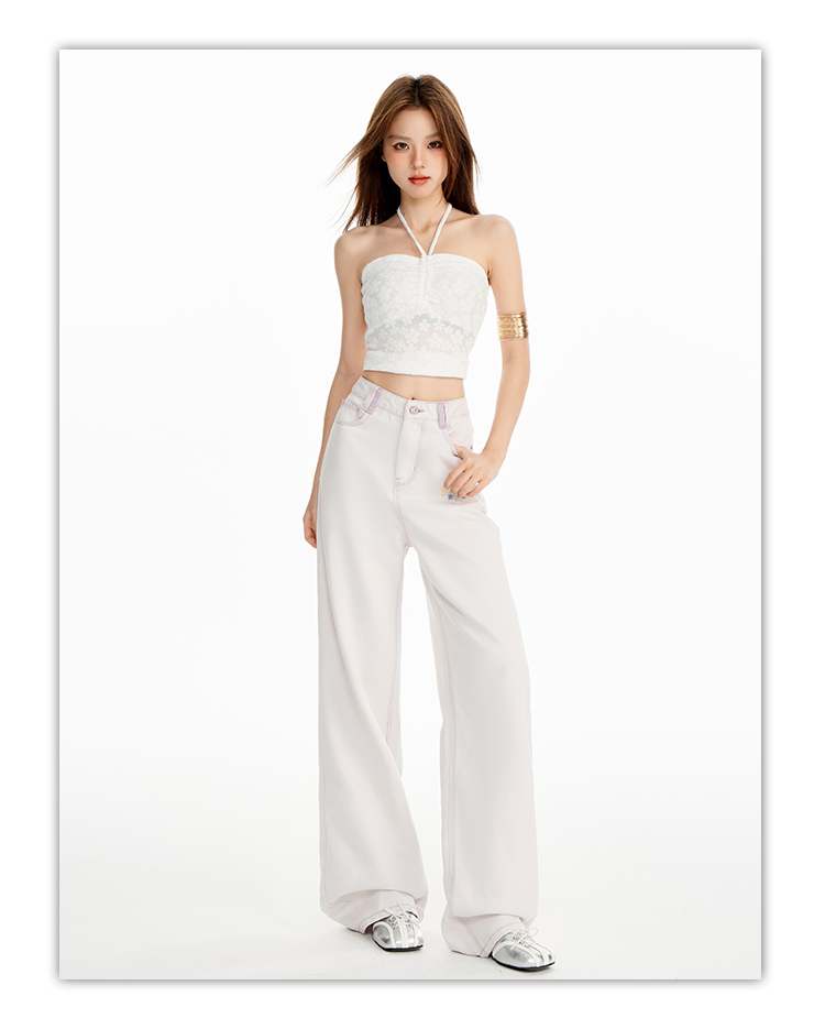 罗蒙女士高腰直筒牛仔裤宽松显瘦时尚百搭长裤舒适休闲通勤女裤