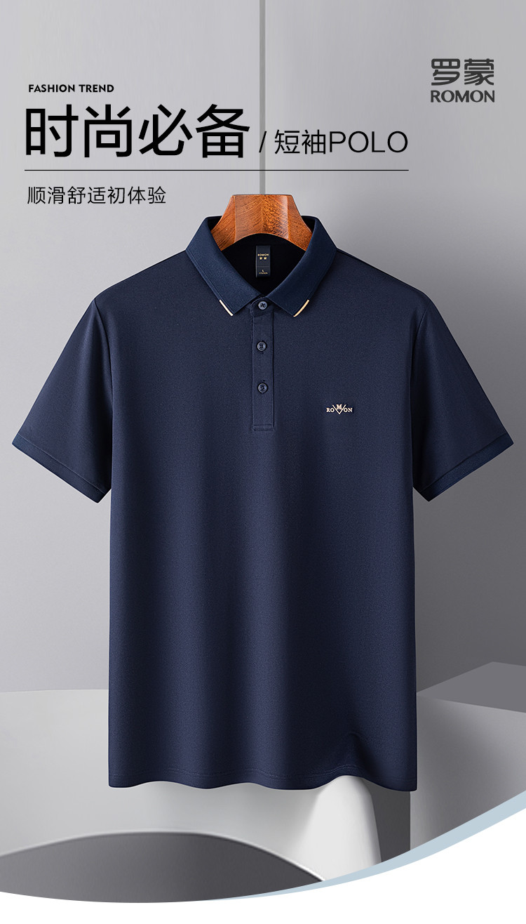 【含桑蚕丝&亚麻】罗蒙夏季男士t恤短袖polo衫百搭polo衫男短袖