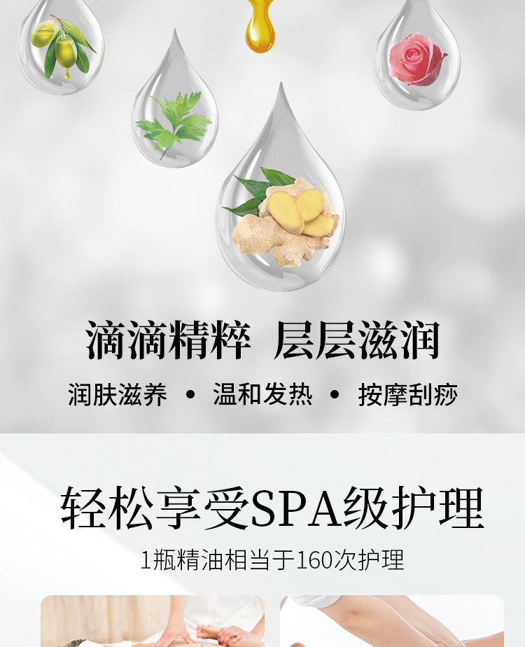 身体按摩精油经络疏通橄榄油玫瑰老姜刮痧2020新品美容院用800ml